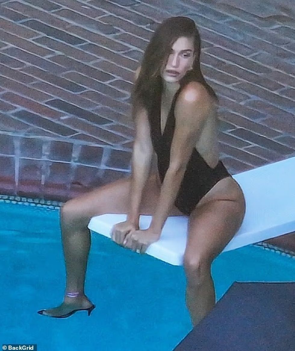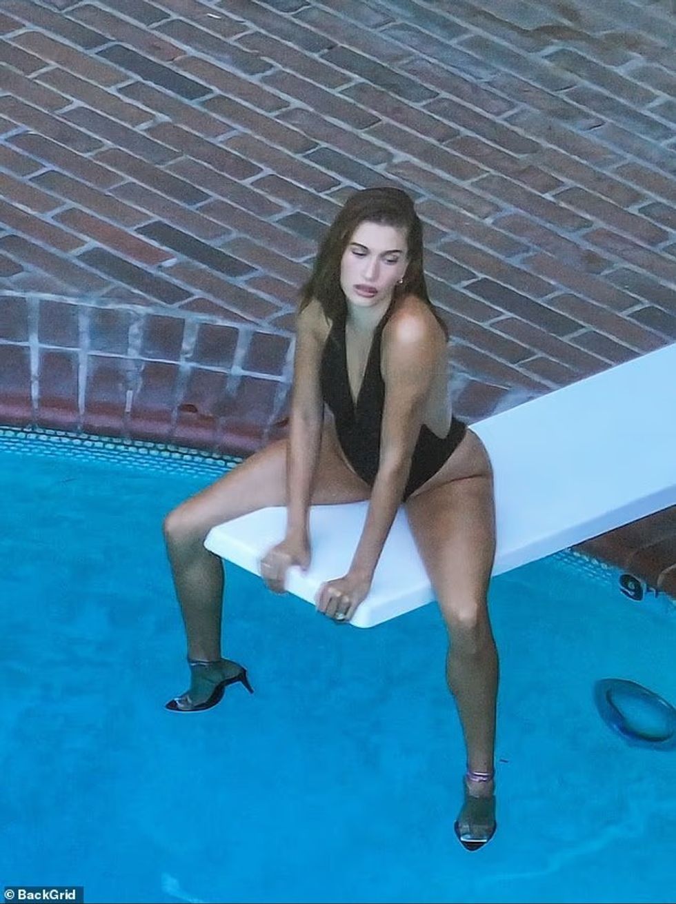 Hailey Bieber u shfaq sensacionale në një set fotografik në Chateau Marmont, duke treguar format e saj me një kostum banje të zi.