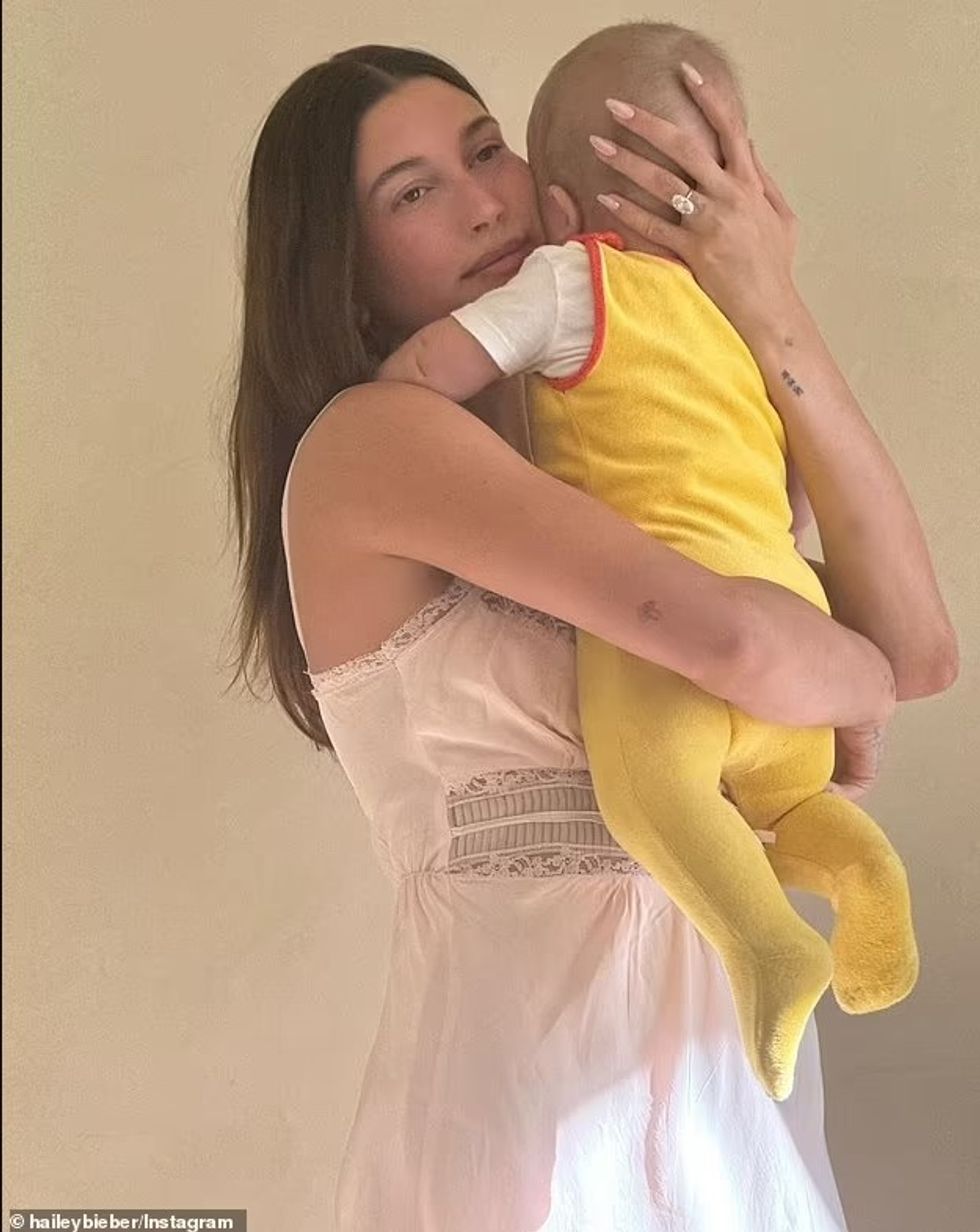 Në një imazh të fundit, vogëlushi shihej duke u zvarritur në dysheme, i veshur me të verdhë dhe jeshile, ndërsa Hailey ripostoi fotografinë me fjalët: “Fëmija im po rritet kaq shpejt.”