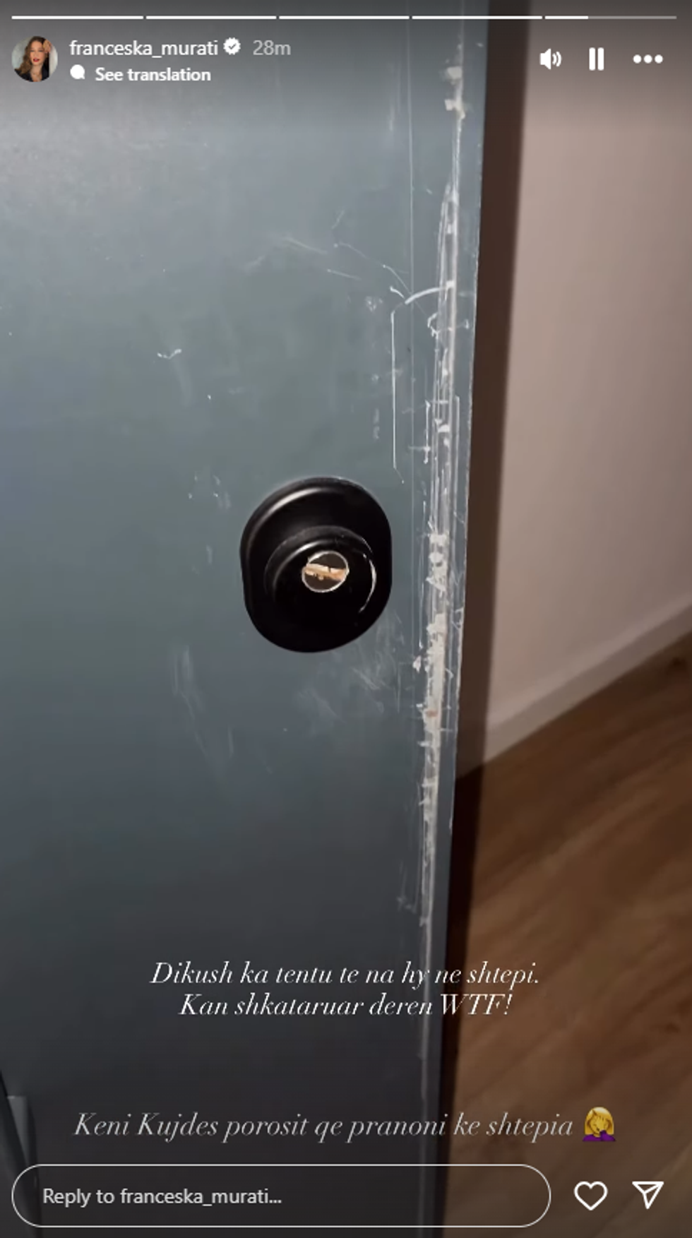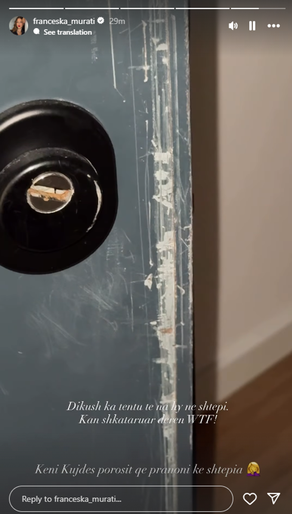 Ish-banorja e edicionit të tretë të Big Brother VIP Albania ka ndarë vetë me ndjekësit një video, ku shihet dera e apartamentit dhe dëmtimet e shkaktuara nga tentativa për ta thyer.