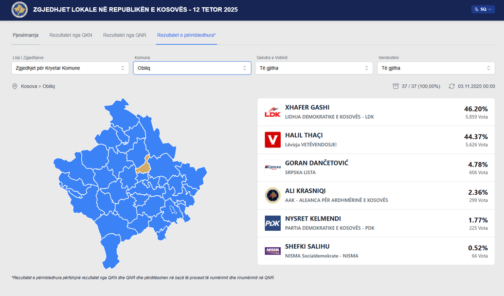 Kështu, Thaçi do të jetë kryetar i Obiliqit për katër vitet e ardhshme, ndërsa Lëvizja Vetëvendosje ka fituar gjithsej shtatë komuna në këto zgjedhje – një rritje prej tri komunash krahasuar me zgjedhjet e vitit 2021. /Telegrafi/