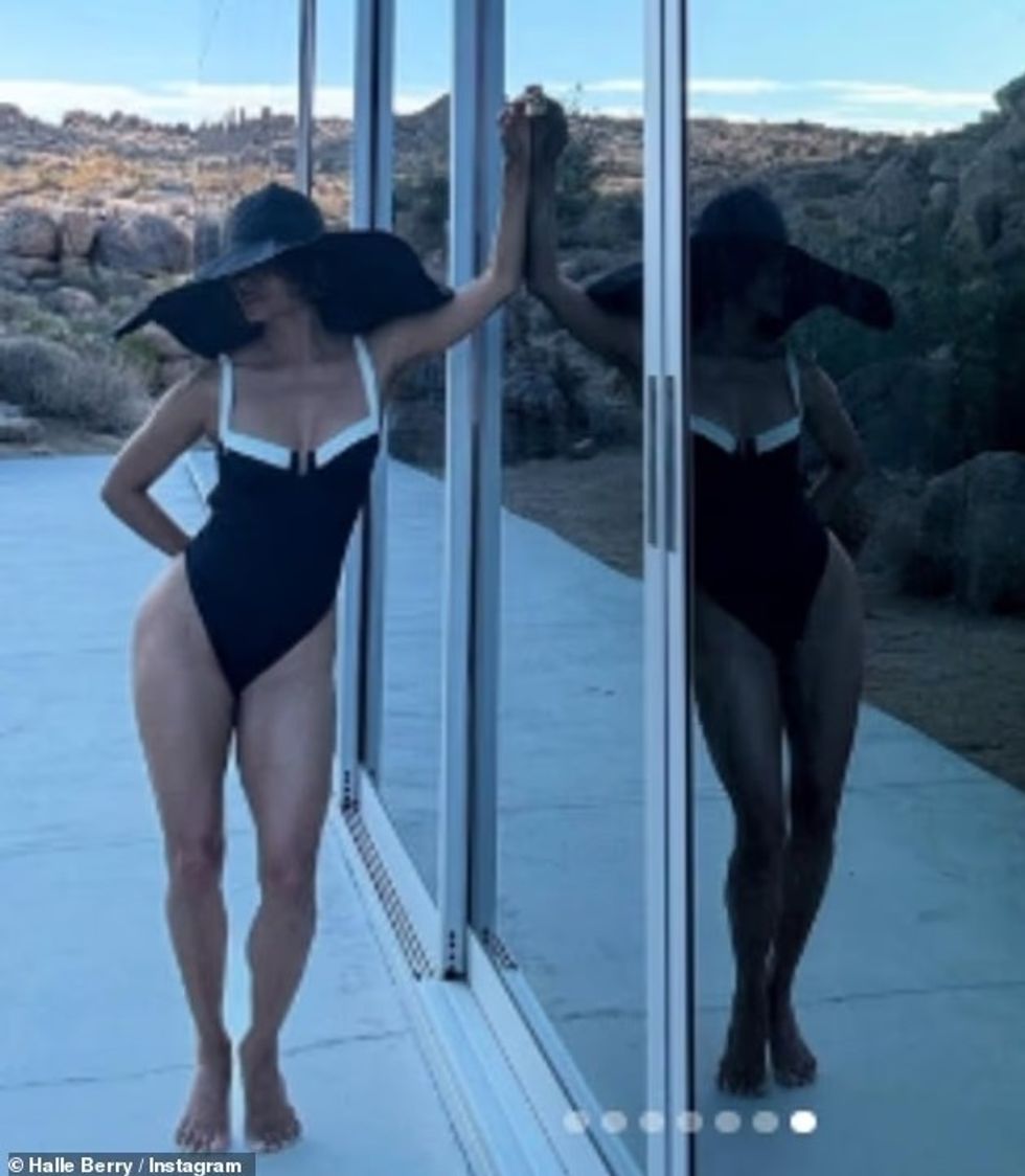 Veshur me një rrobë banje njëpjesëshe me stil retro të viteve të 50-ta dhe me një kapelë të madhe të zezë, Berry tregoi linjat e saj të tonifikuara dhe hijeshinë që e ka karakterizuar ndër vite, shkruan DailyMail.