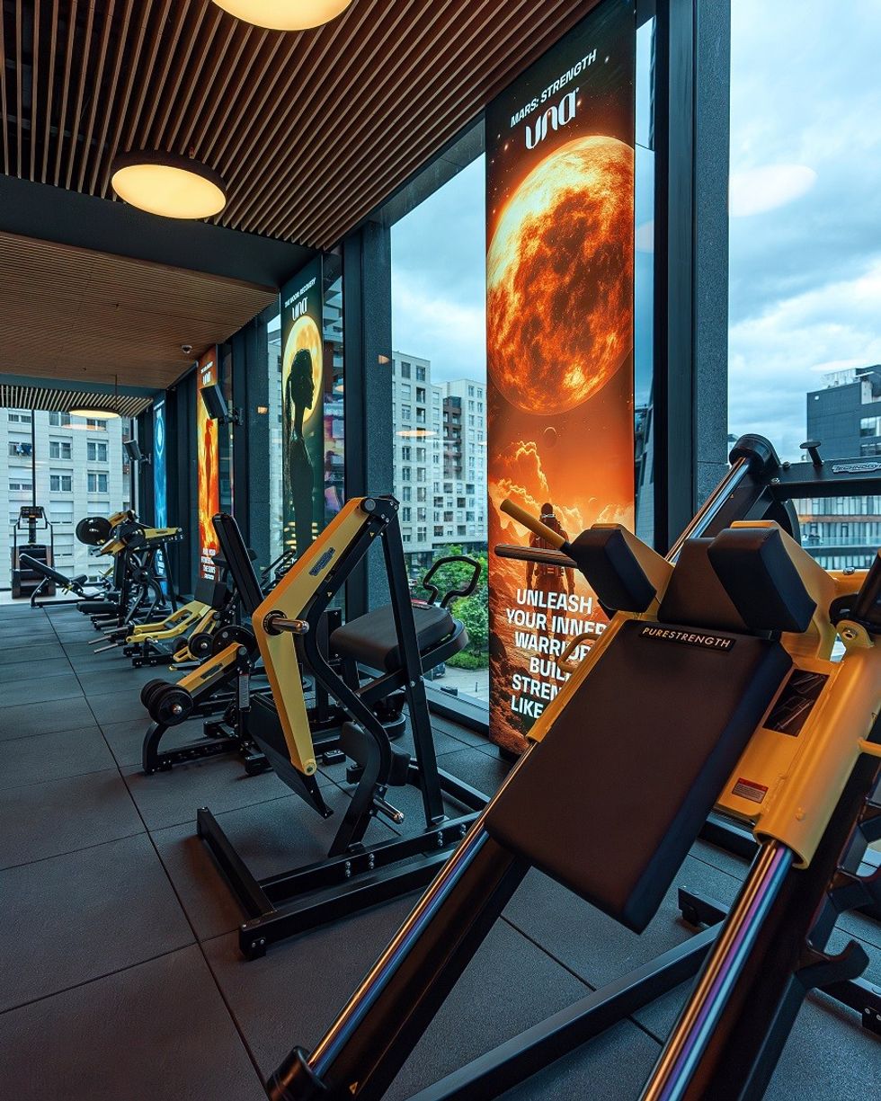 -Fitness center me pajisje Technogym të integruara me inteligjencë artificiale për një eksperiencë trajnimi të personalizuar.