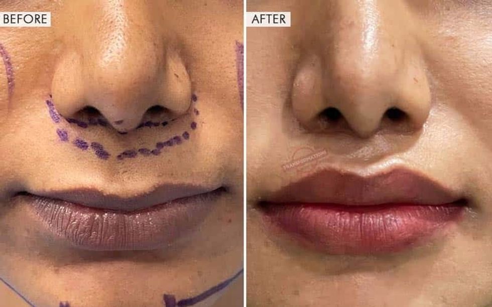 Harrojini mbushësit: Kjo procedurë zvogëlon distancën midis hundës dhe buzës së sipërme