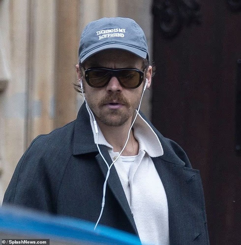 Por, s’mund të flasim për Harry-n pa përmendur një nga aksesorët e tij më të famshëm – kapelën gri me mbishkrimin “Techno is my boyfriend”.