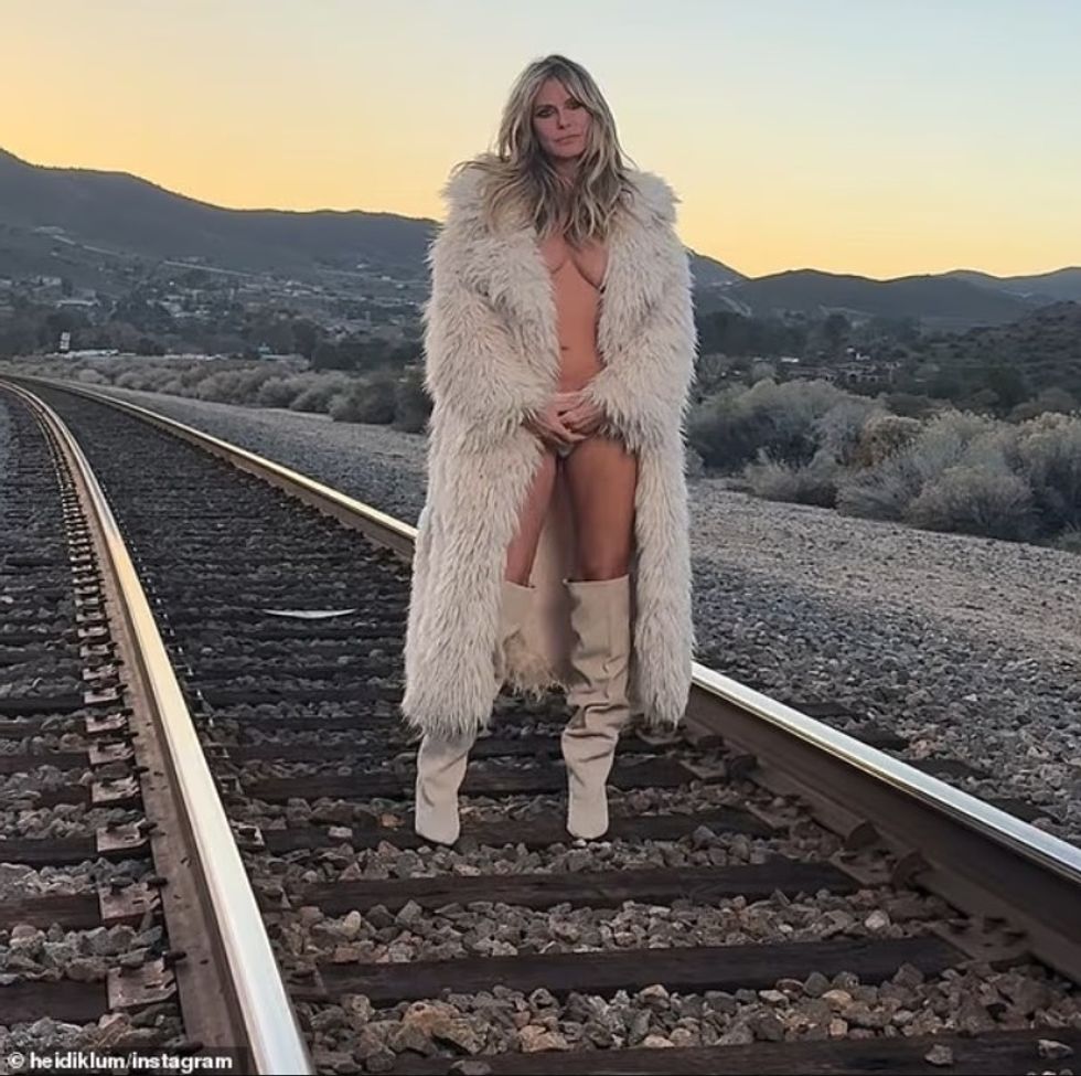 Video e shkurtër tregon Klum në një peizazh shkretëtire gjatë perëndimit të diellit, teksa shikon drejt kamerës, shkruan DailyMail.