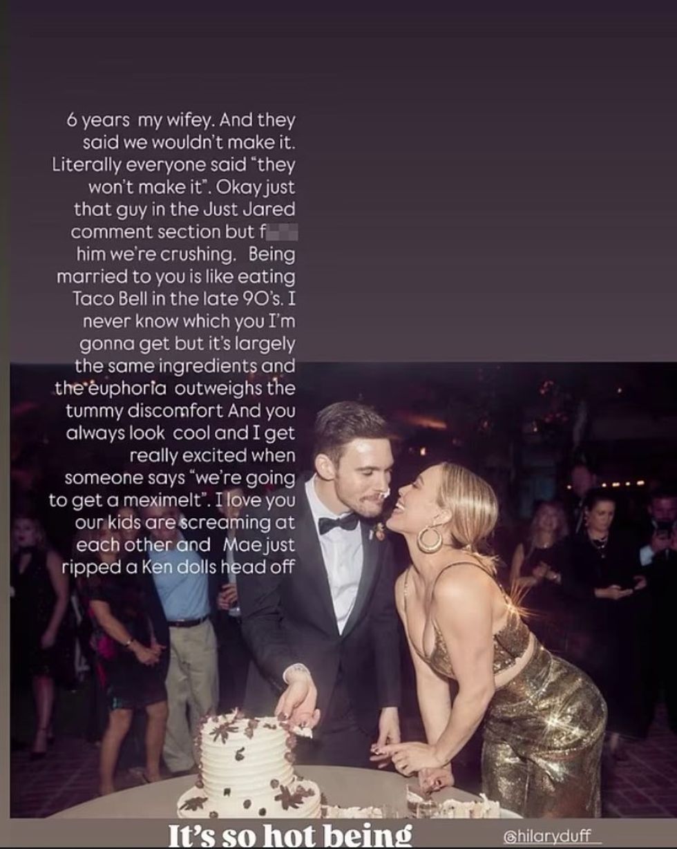 Hilary Duff dhe Matthew Koma festuan përvjetorin e gjashtë të martesës të dielën, duke përdorur rrjetet sociale për të ndarë momente nga jeta e tyre dhe për t’u kundërpërgjigjur kritikëve.