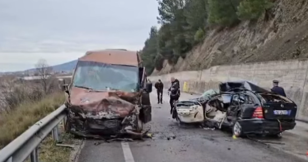 Nga përplasja tragjike e një mjeti tip Benz dhe një furgoni pasagjerësh kanë humbur jetën dy persona dhe pesë të tjerë janë lënduar.