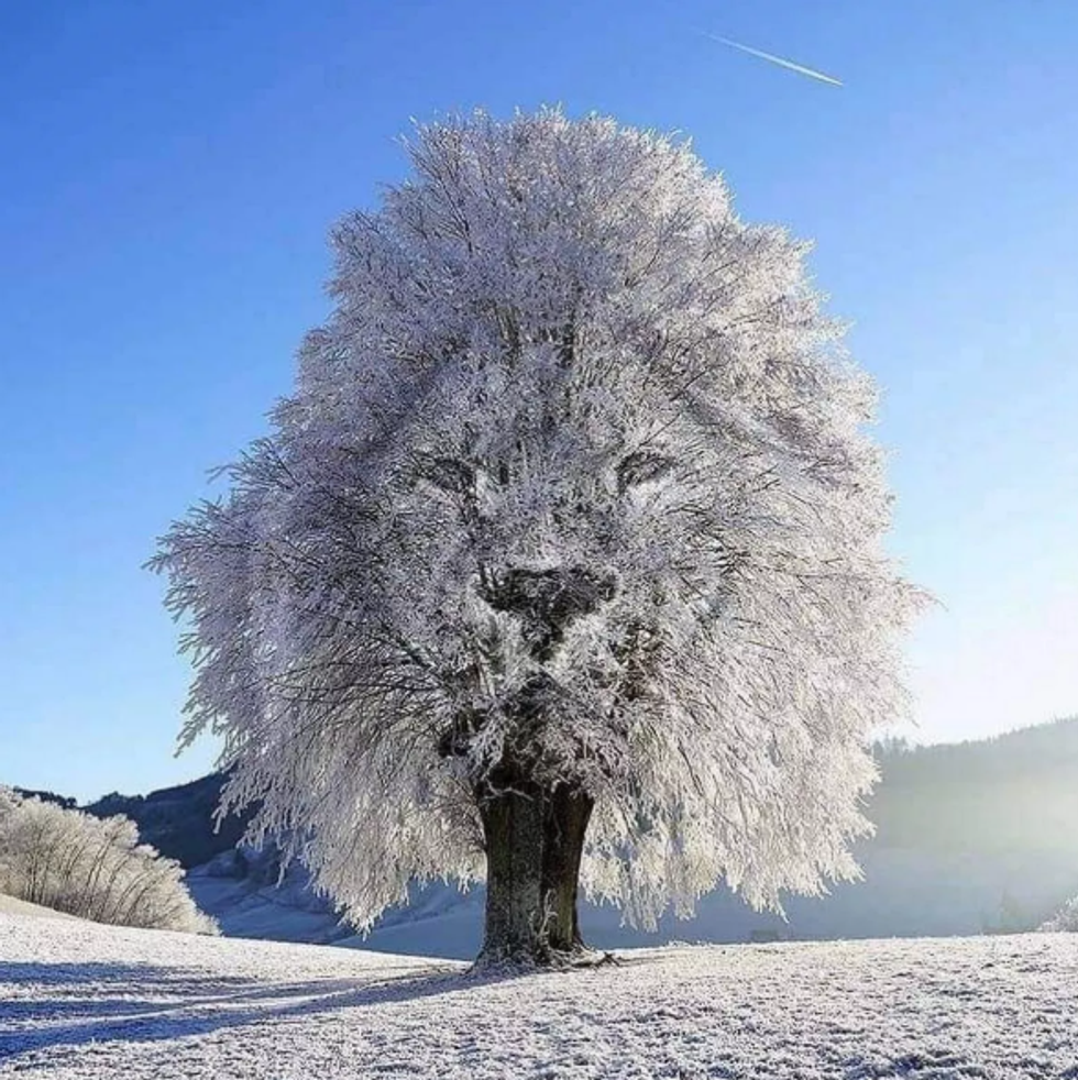 Kur vëzhgoni këtë imazh, ka të ngjarë të shihni ose një pemë të pluhurosur nga bora ose fytyrën e një luani.
