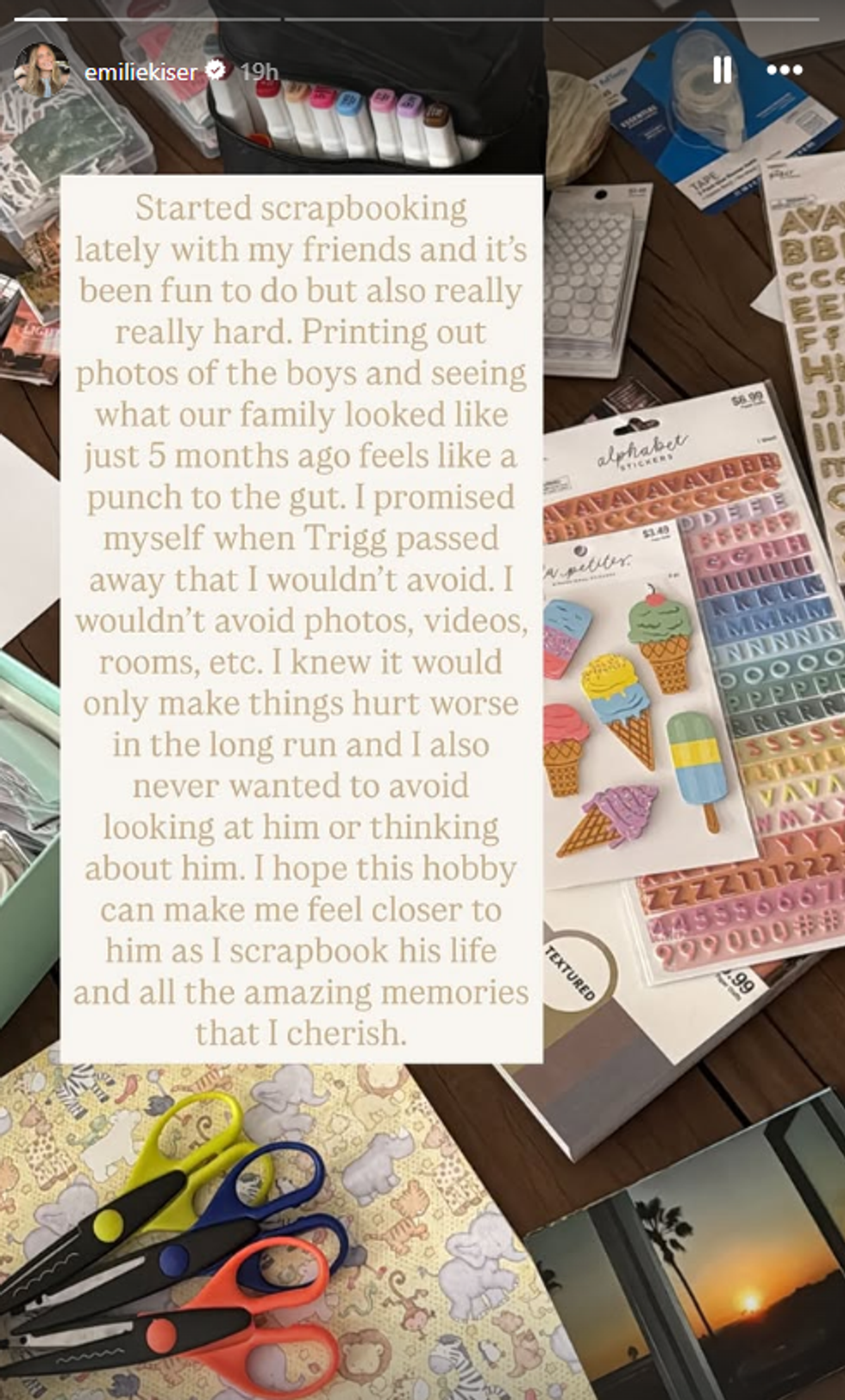 Në një postim në Instagram, Emilie ka treguar se së fundmi ka filluar të krijojë albume fotografike si një mënyrë për të përballuar dhimbjen.