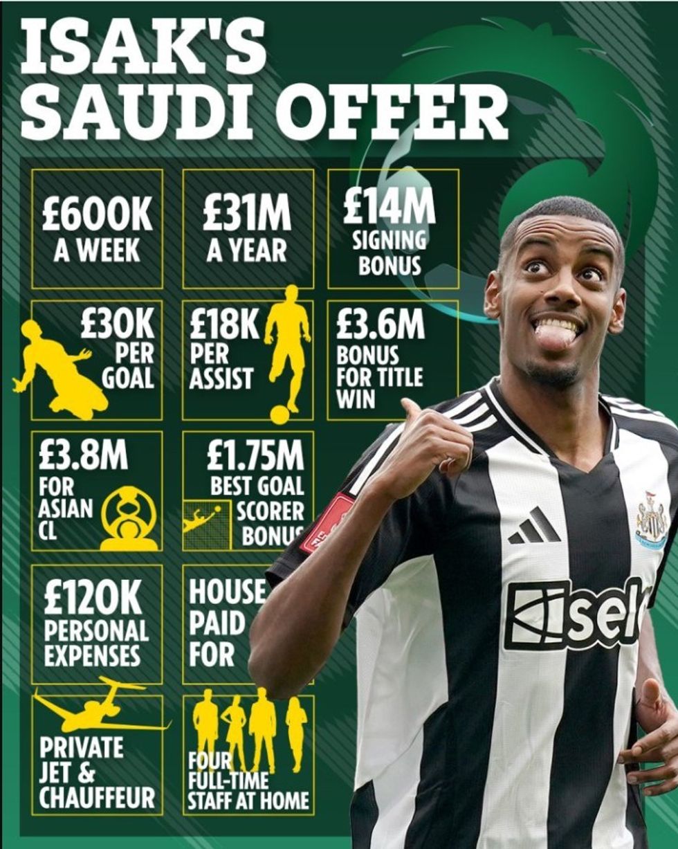 Pasi u tha drejtuesve të Newcastle United se donte një sfidë të re në karrierën e tij, Isak mori një ofertë të mrekullueshme nga sauditët, por në vend të parave, ai vendosi përparimin në karrierë në vend të parë.