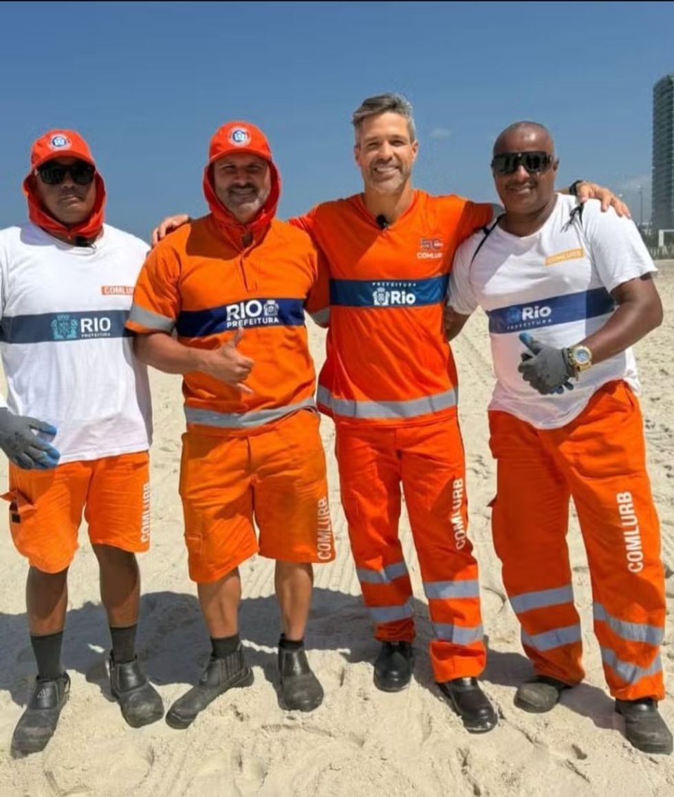 O ex-jogador trabalhou ao lado dos profissionais da Comlurb, empresa responsável pela limpeza do Rio.
