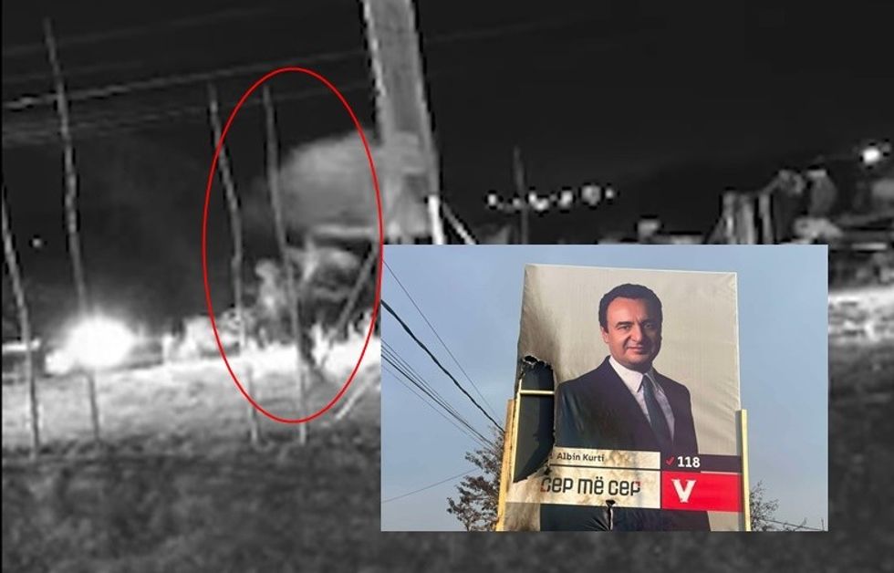 Sipas zyrtarëve të LVV-së, posteri i Kurtit është djegur me benzinë. Të njëjtit kanë publikuar edhe video ku shihet personi teksa del nga vetura dhe i vë flakën posterit.