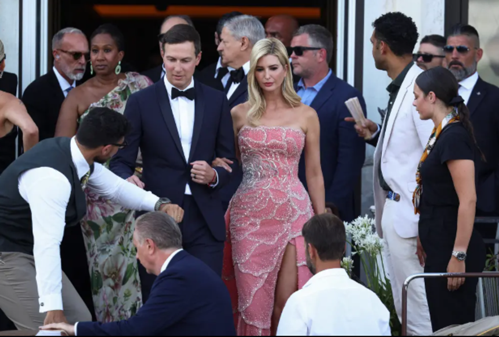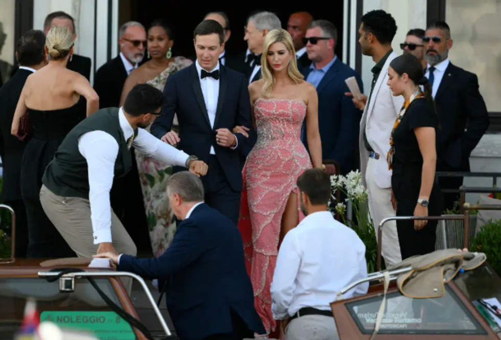 Vajza e parë e presidentit Donald Trump mbërriti në ceremoninë e shumëpritur të martesës së miqve të saj, Lauren Sanchez dhe Jeff Bezos, në Venecia të Italisë, e veshur me një fustan të gjatë rozë nga stilisti Tony Ward.