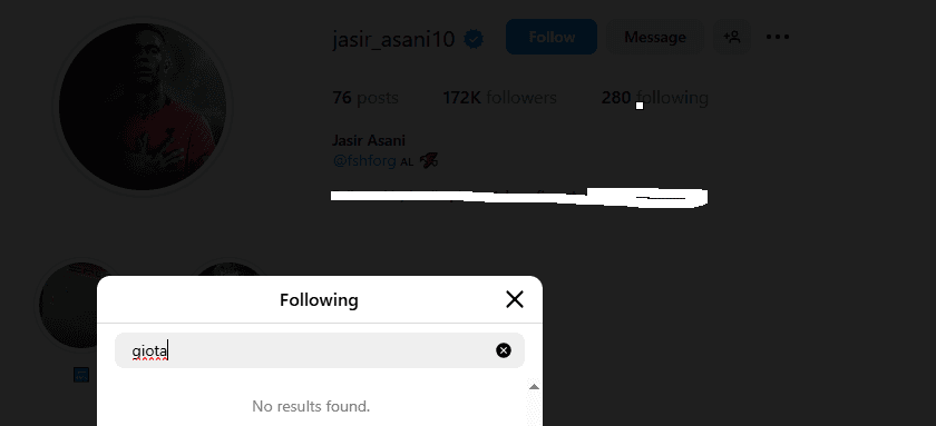 “Dikur kam pasur një Instagram publik dhe Jasiri më ndiqte aty. Nuk e dija deri sa një ditë ai vendosi të më shkruajë dhe pse dëshira ime nuk ishte për t’iu përgjigjur. Mirëpo, ai nuk hoqi dorë dhe pse unë mendoja shpesh mos t’i ktheja më përgjigje”, deklaroi Giota.