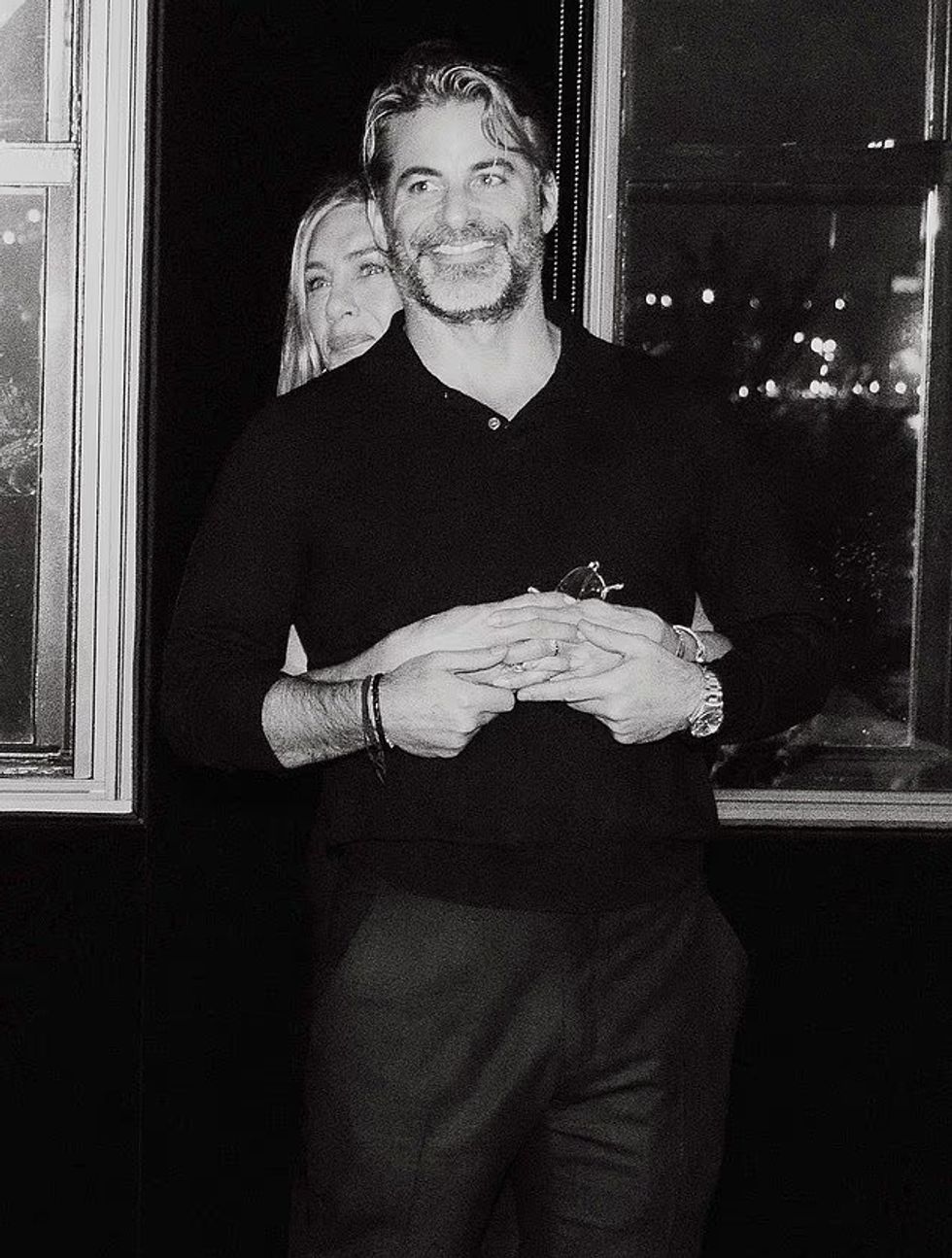 Në një fotografi tjetër, Aniston pozon po ashtu me të brendshme, të kombinuar me një bluzë, megjithatë zbulon barkun e saj të sheshtë.