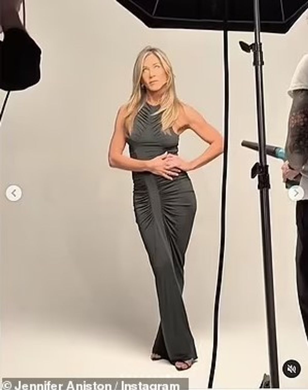 Jennifer Aniston tregon format e saj në një fustan të ngushtë, ndërsa promovon markën e flokëve