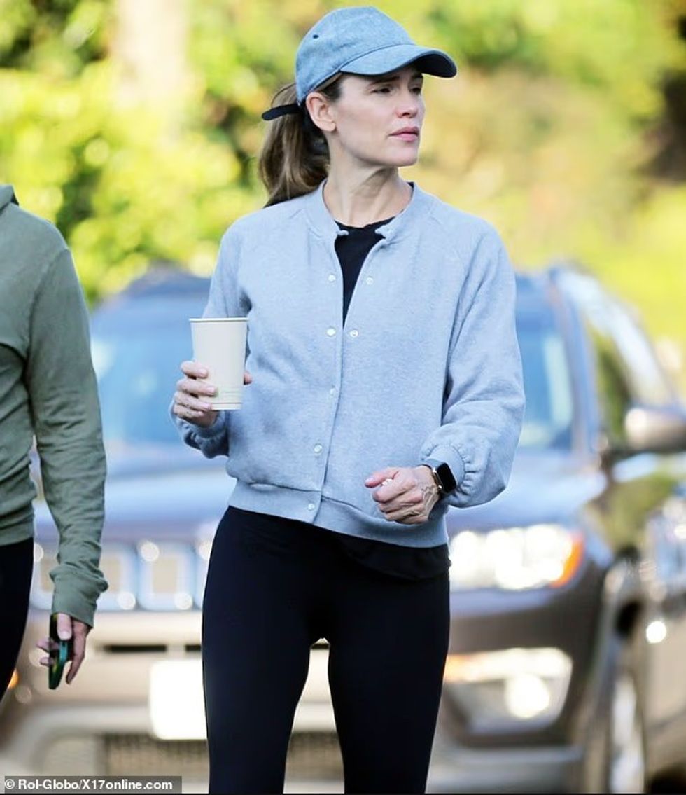 Me flokët e lidhur bisht kali dhe një filxhan kafeje në dorë, Garner reflektonte freski dhe thjeshtësi, shkruan DailyMail.