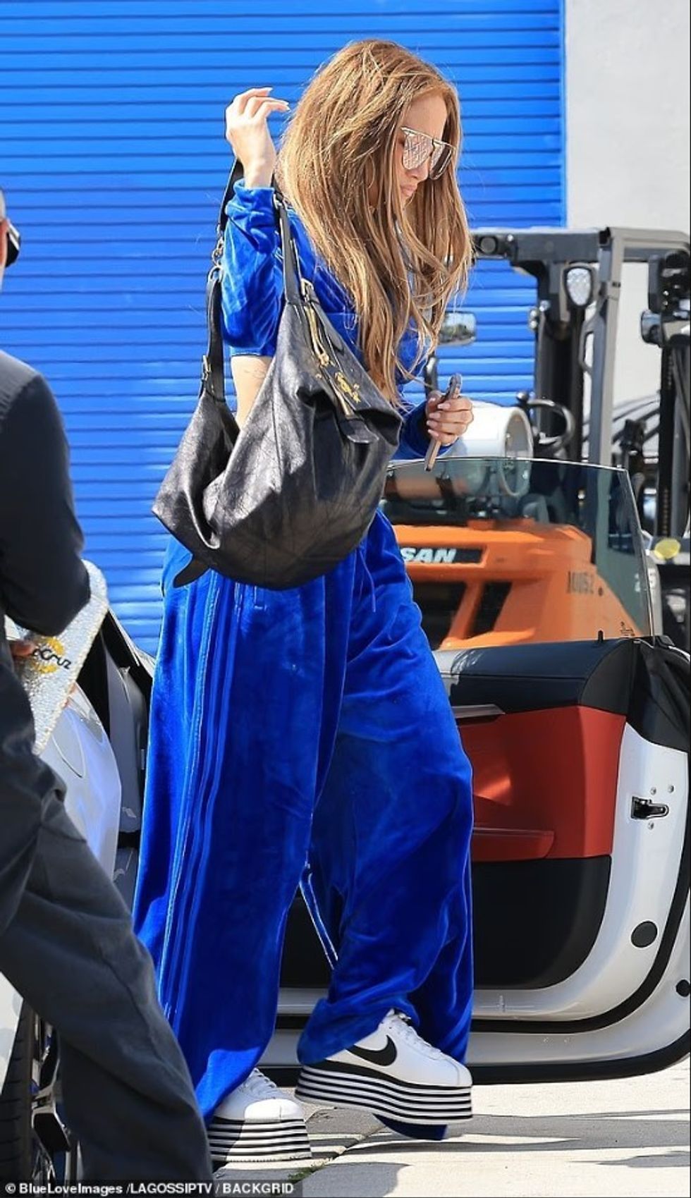 Jennifer Lopez u shfaq me një stil mbresëlënës në Los Angeles të premten, duke tërhequr vëmendje me një kostum sportiv kadifeje blu dhe atlete.