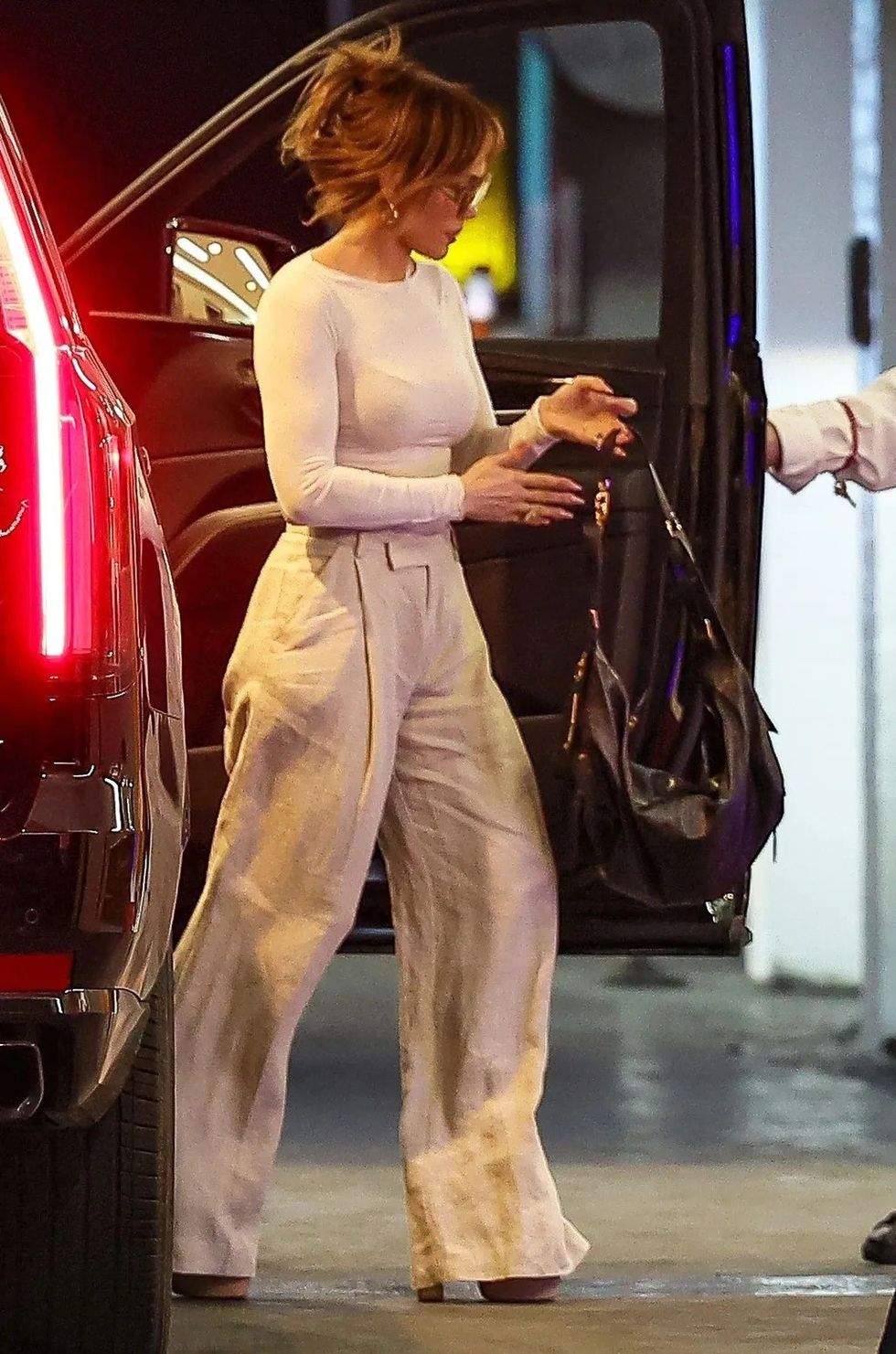 Të mërkurën, J.Lo u fotografua në Los Angeles e veshur me trendin e pantallonave që është një hit çdo pranverë: pantallona lino të gjera.