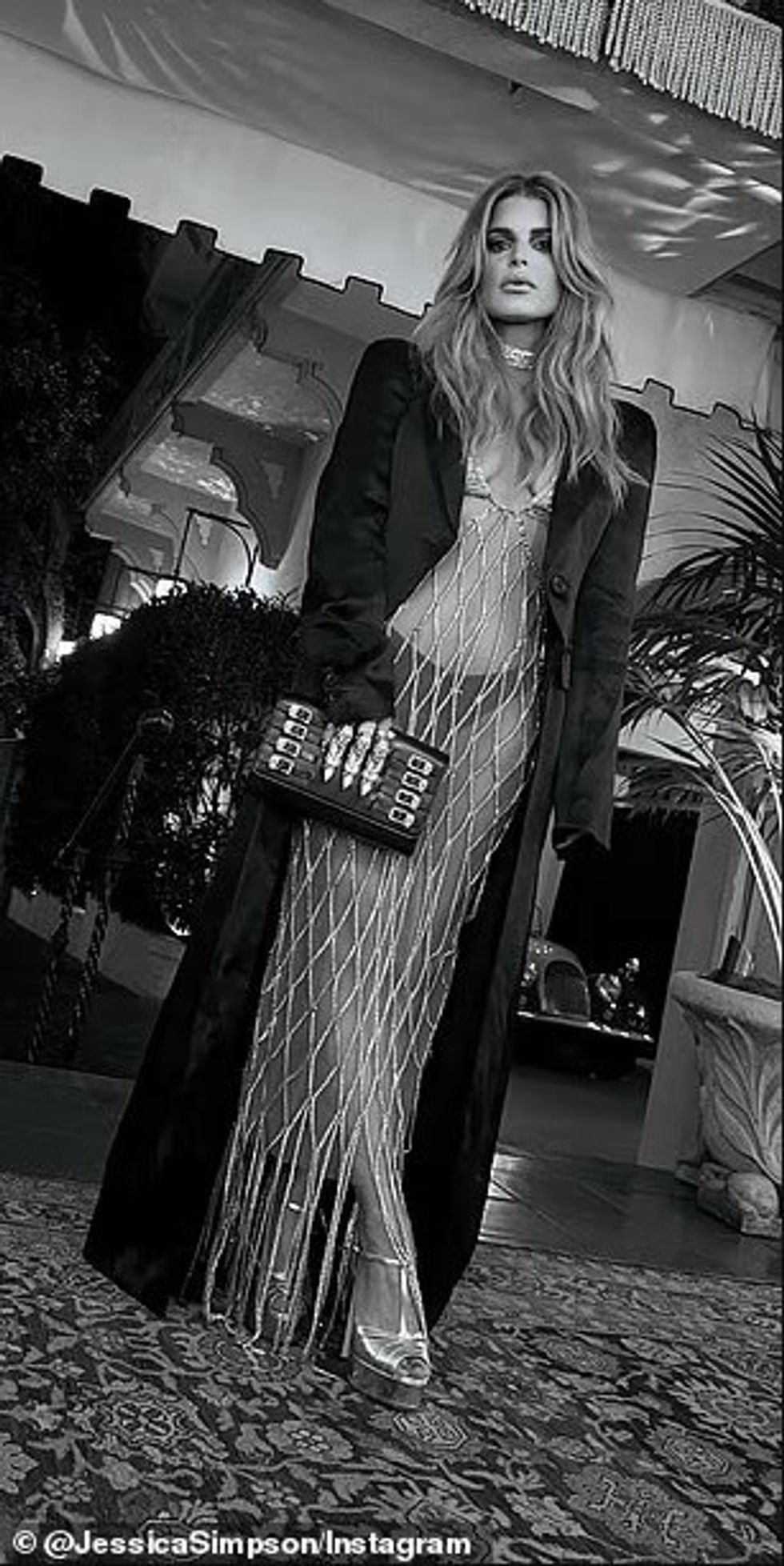 Ajo zgjodhi një fustan transparent me rrjetë e gurë për mbrëmjen, të kombinuar me taka platforme dhe një pallto elegante, shkruan DailyMail.