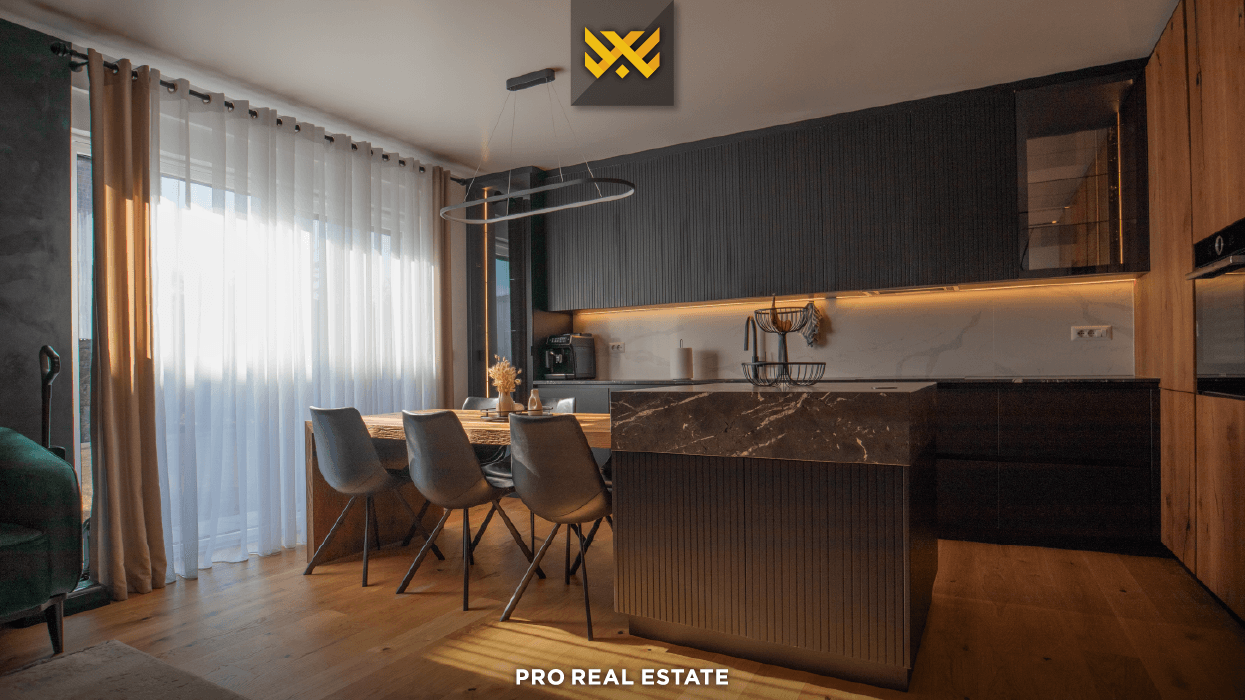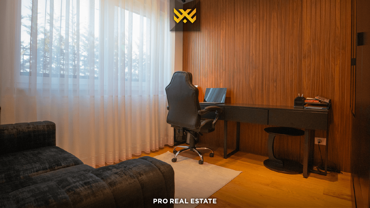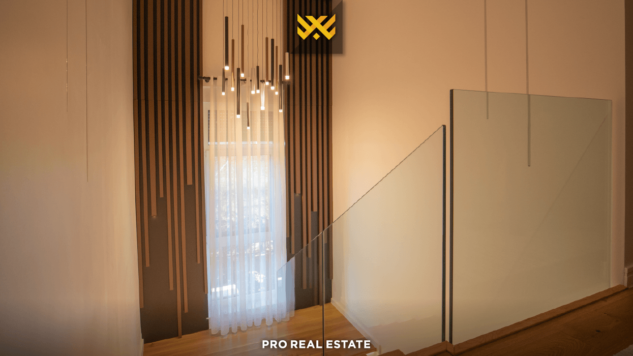 Prona shtrihet në bodrum, përdhes dhe një kat, me orientim të favorshëm nga të gjitha anët, çka siguron ndriçim natyral gjatë gjithë ditës. Organizimi i brendshëm është menduar për funksionalitet dhe komoditet familjar, duke përfshirë dy hapësira të veçanta për qëndrim ditor, kuzhinë, pesë dhoma gjumi - prej tyre një master - tri banjo, një tualet shtesë, depo dhe dy ballkone.