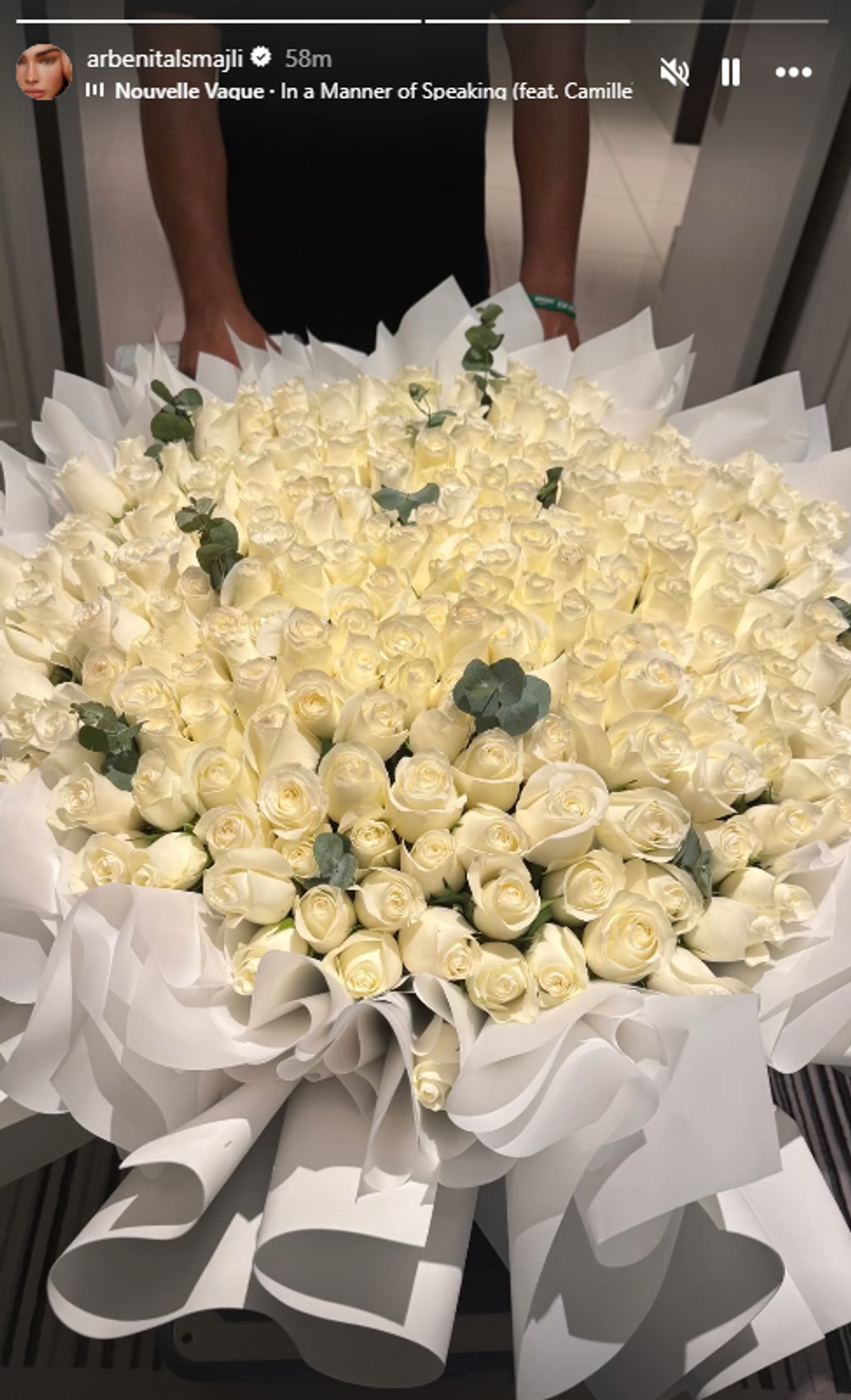 Ajo është befasuar me një buqetë të madhe me trëndafila të bardhë, duke shkaktuar menjëherë reagime të shumta në rrjetet sociale.