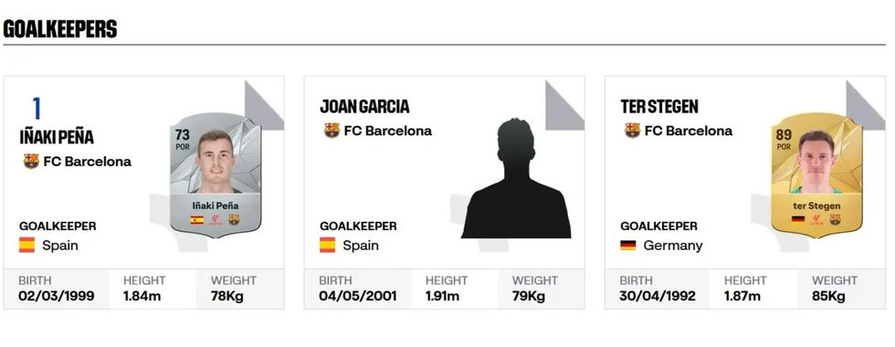 Në mënyrë surprizuese, Inaki Pena mban aktualisht fanellën me numrin 1, ndërsa Garcia dhe Ter Stegen nuk kanë ende numra të caktuar.