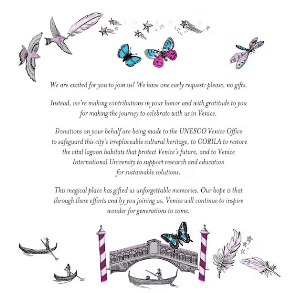 ABC News ka siguruar një pjesë të ftesës së dasmës së Jeff Bezos dhe Lauren Sanchez, e cila është dërguar në muajin maj.