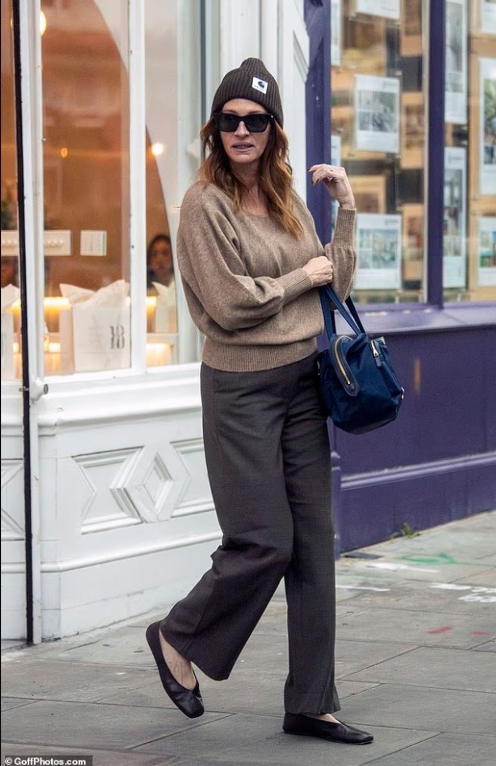 Në film, personazhi i saj Anna Scott, një yll i famshëm i Hollivudit, përpiqej të dilte fshehurazi në një librari në lagjen e qetë të Londrës, duke mbajtur një kapelë dhe syze dielli, dhe duket se Julia mori frymëzim nga ajo pamje edhe këtë here, shkruan DailyMail.