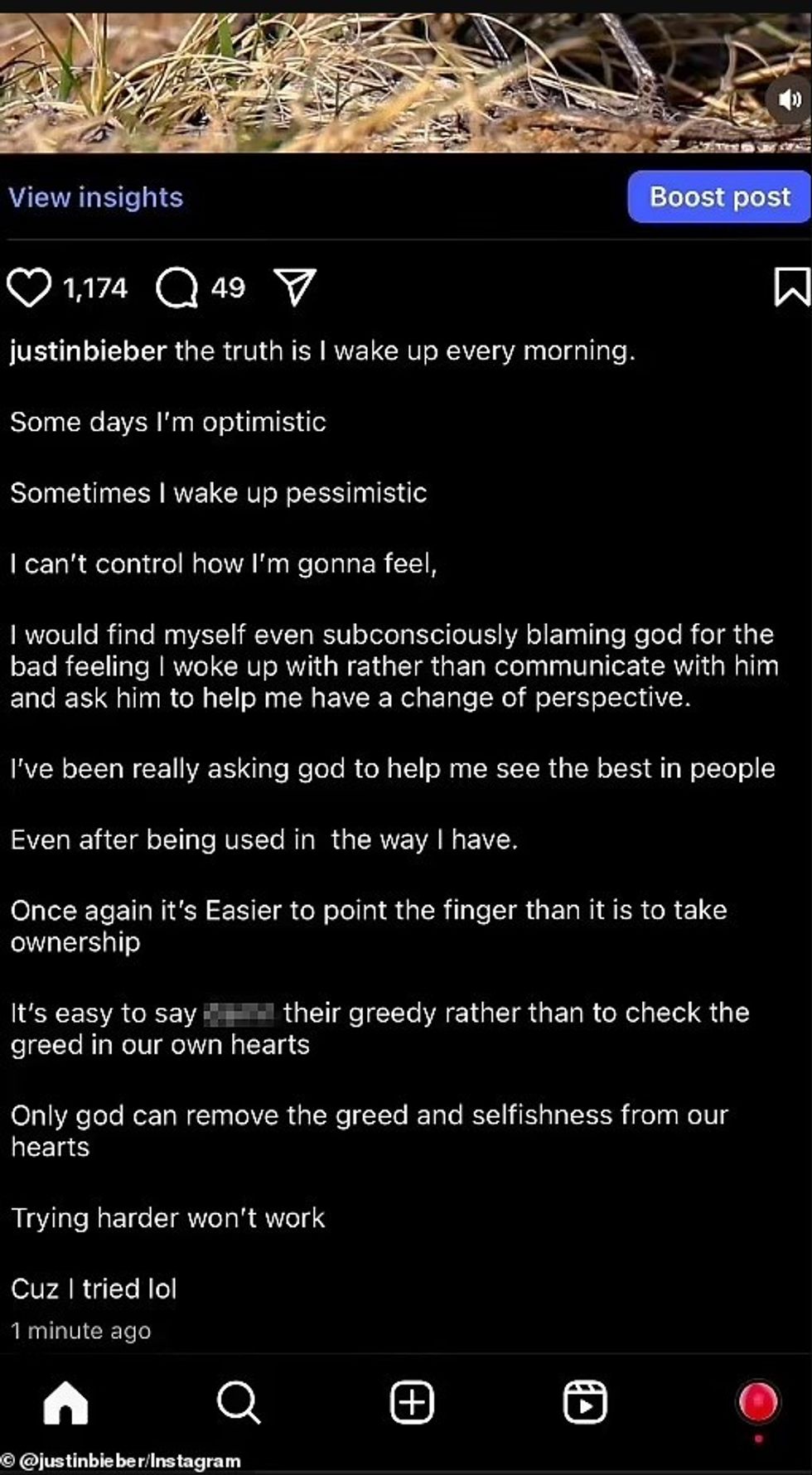 Postimet vijnë mes spekulimeve për gjendjen emocionale të Bieber dhe raportet për martesën e tij me Hailey Bieber.