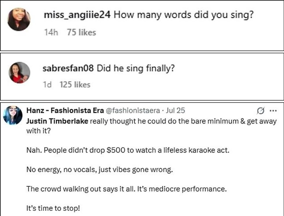 “Justin nuk po jep më as minimumin”, “600 dollarë për karaoke live? Jo faleminderit”, ishin disa nga komentet e ashpra në rrjetet sociale.
