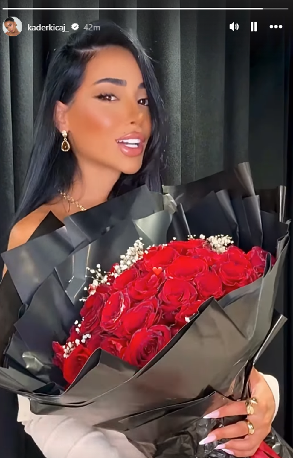 Së fundmi, Kaderi ka ndarë me ndjekësit një postim në rrjete sociale, ku shihet duke mbajtur në duar një buqetë të madhe me trëndafila të kuq.