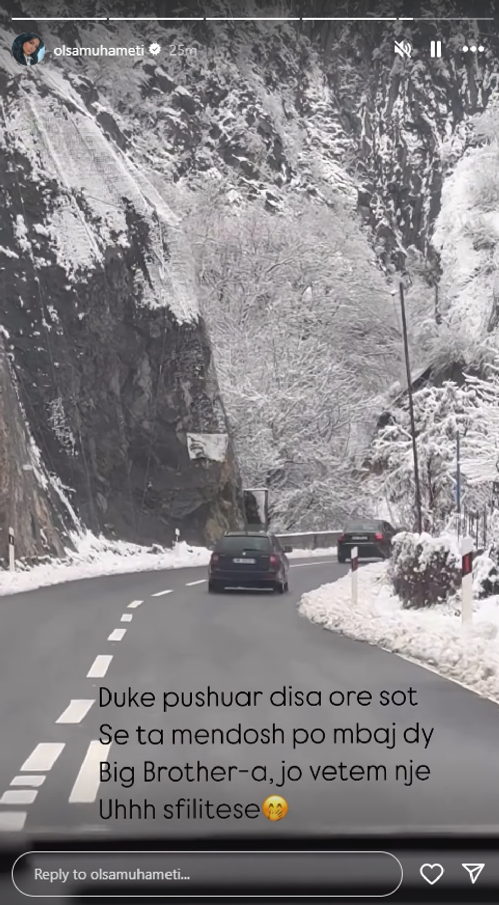 “Duke pushuar disa orë sot. Se ta mendosh po mbaj dy Big Brother-a, jo vetëm një. Uhhh sfilitëse”, ka shkruar ajo.