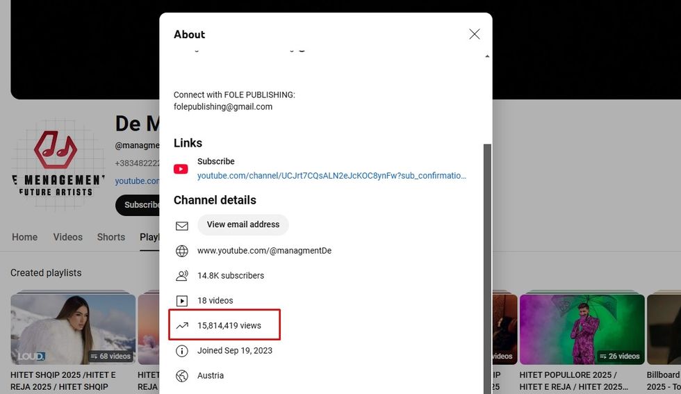 Kanali “De Music”, i udhëhequr nga De Management Future Artists, ka shënuar një sukses të madh në YouTube, duke gjeneruar mbi 15 milionë klikime falë playlistave të tij të kuruara me hite shqiptare.