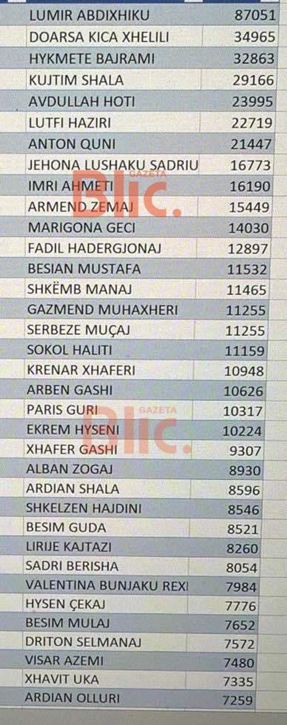 Një paraqitje të fortë kanë bërë edhe Avdullah Hoti dhe Lutfi Haziri, të cilët kanë marrë 23,995 dhe 22,719 vota, respektivisht.