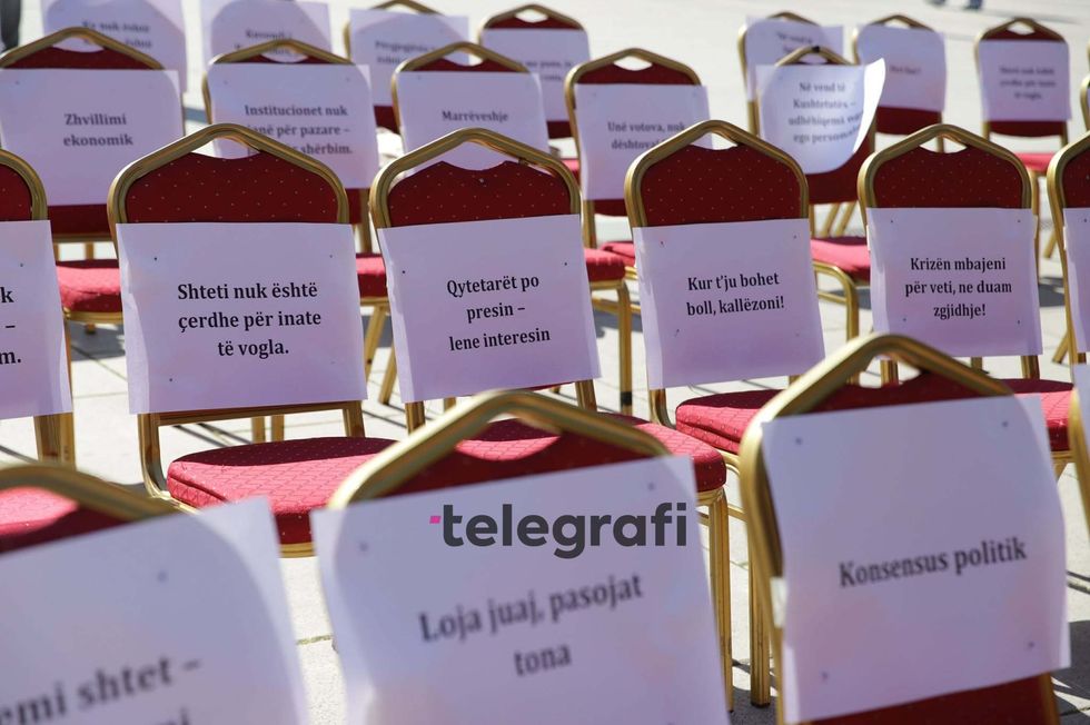 Disa nga mesazhet e vendosura në karriget simbolike ishin “120 rroga, 0 përgjegjësi”, “Deri kur?”, “Cirku i demokracisë”, “Ky nuk është serial – është shteti ynë” ,“Për çka ju kemi zgjedhur?”.