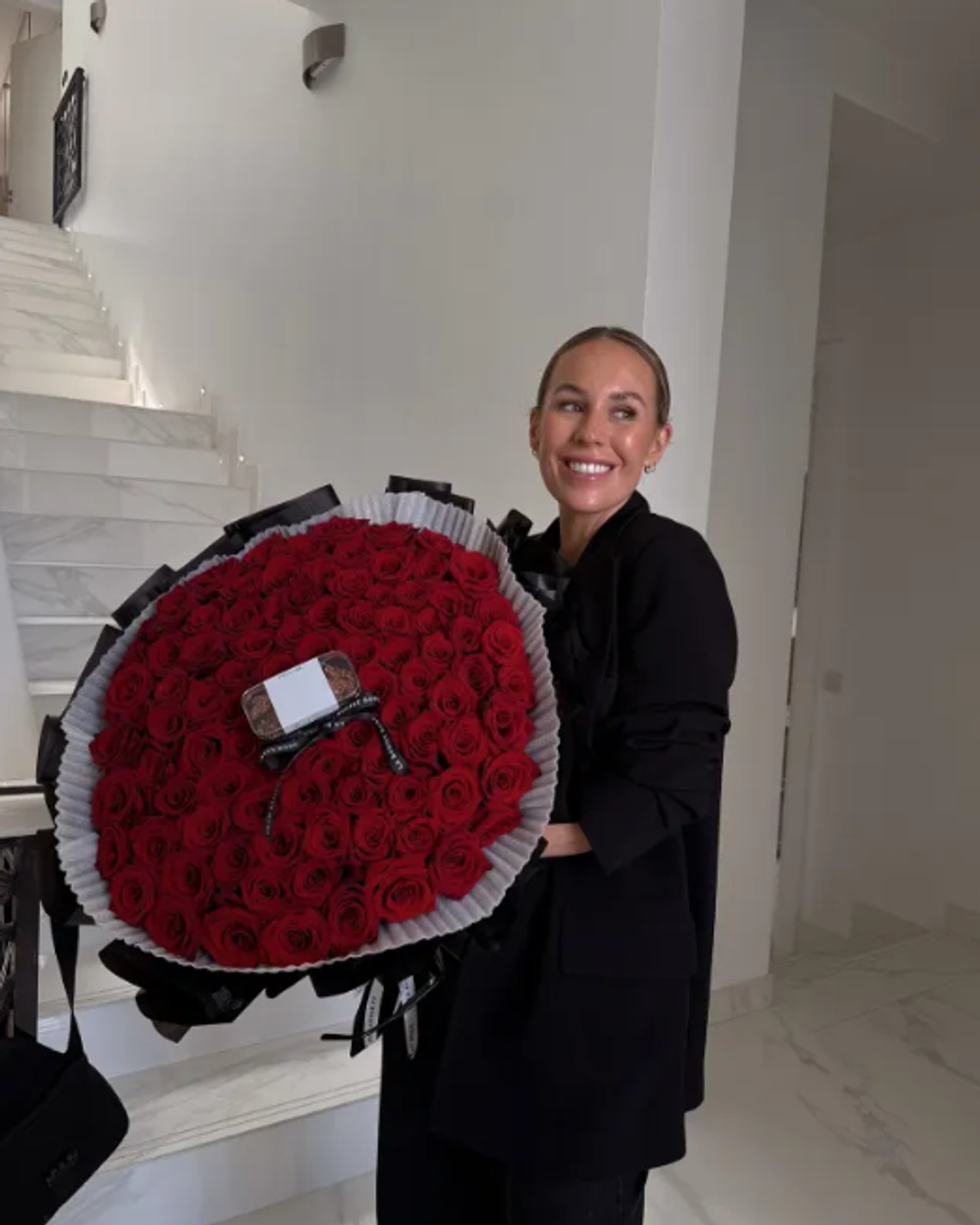 Në postimin e fundit, Kate shfaqet me një veshje bezhë, duke luajtur me dy fëmijët e saj në pishinë dhe duke pozuar me dhjetëra trëndafila të kuq.