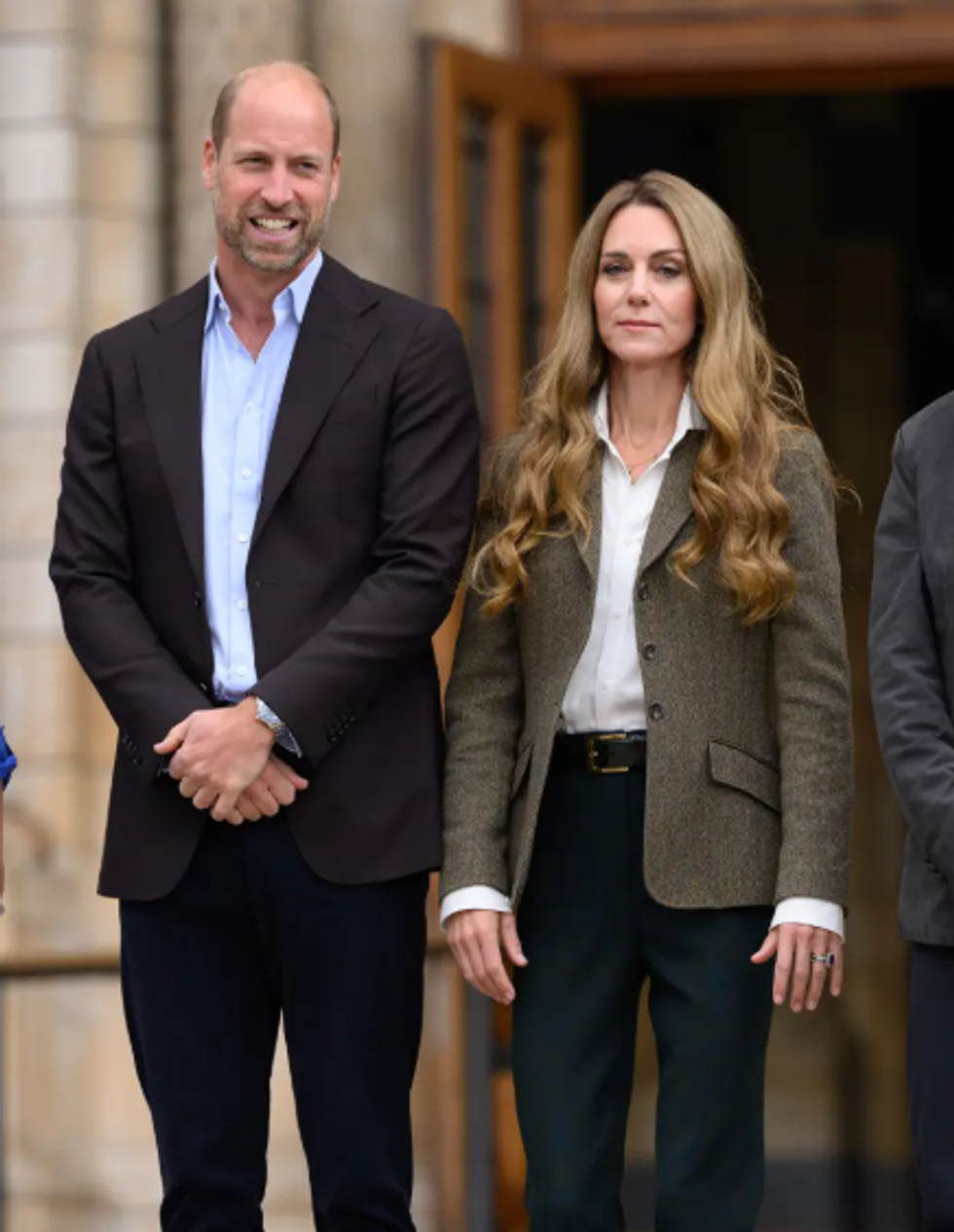 Dukesha e Kembrixhit kishte veshur një xhaketë të stiluar nga Ralph Lauren, një këmishë të bardhë klasike nga WNU (190 dollarë) dhe pantallona elegante.