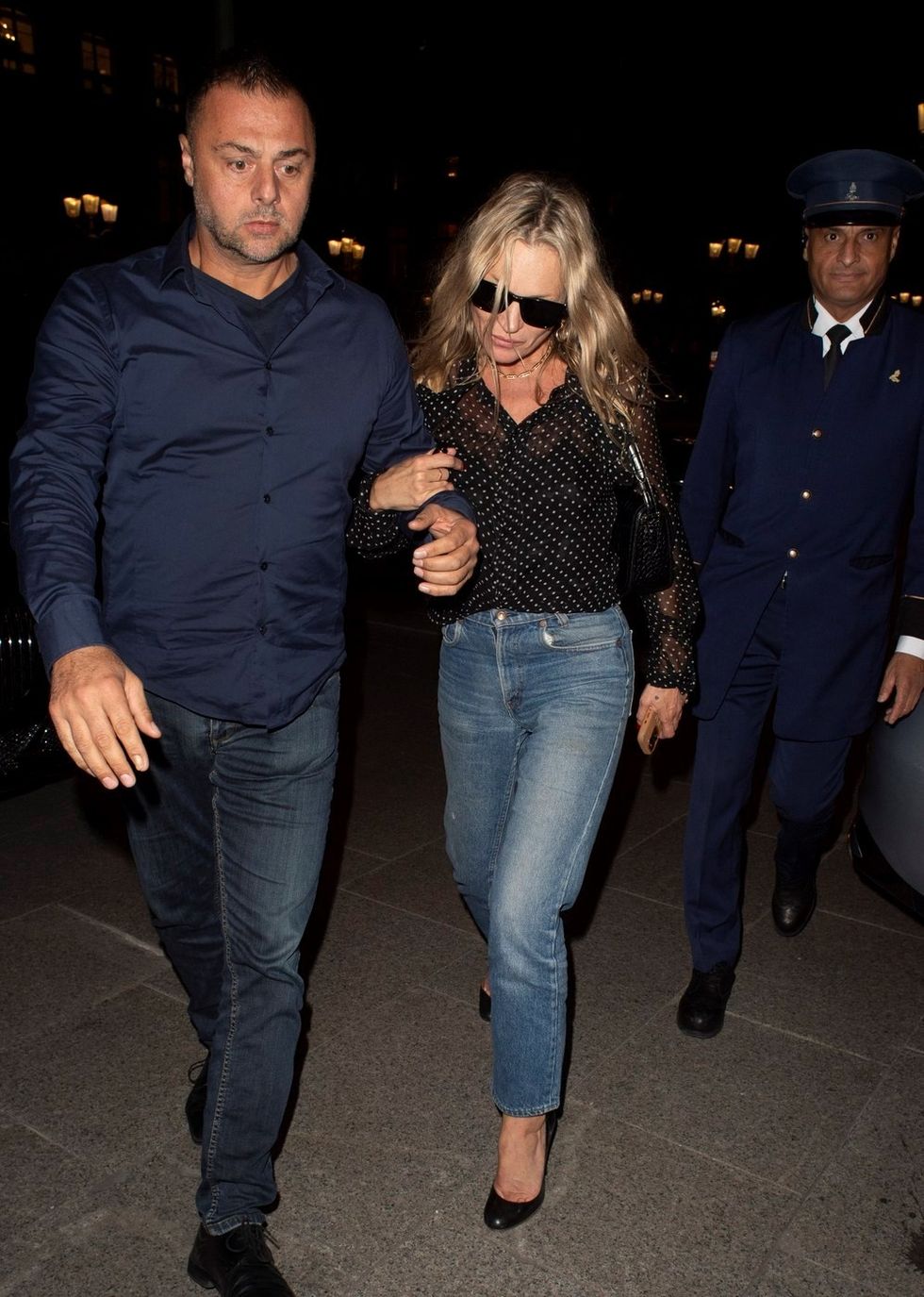 Kate Moss fotografohet në gjendje jo të mirë në Paris - supermodelja e lodhur dhe e dehur mbahet te krahët e një shoku në mbrëmje