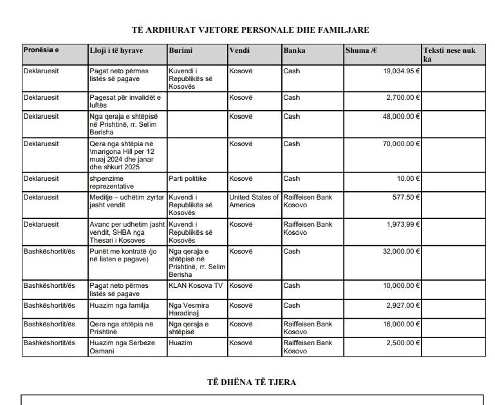 Haradinaj tutje ka raportuar edhe paratë e gatshme në llogari.