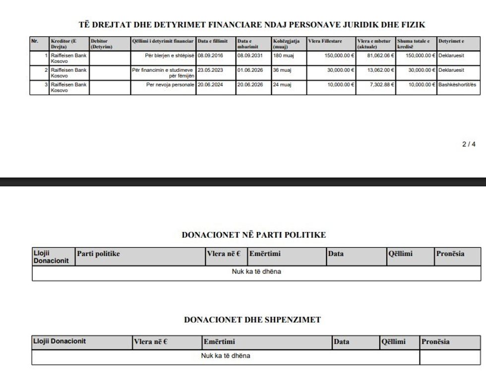 Lideri i AAK-së ka paraqitur edhe obligimet që ka ndaj bankës. /Telegrafi/