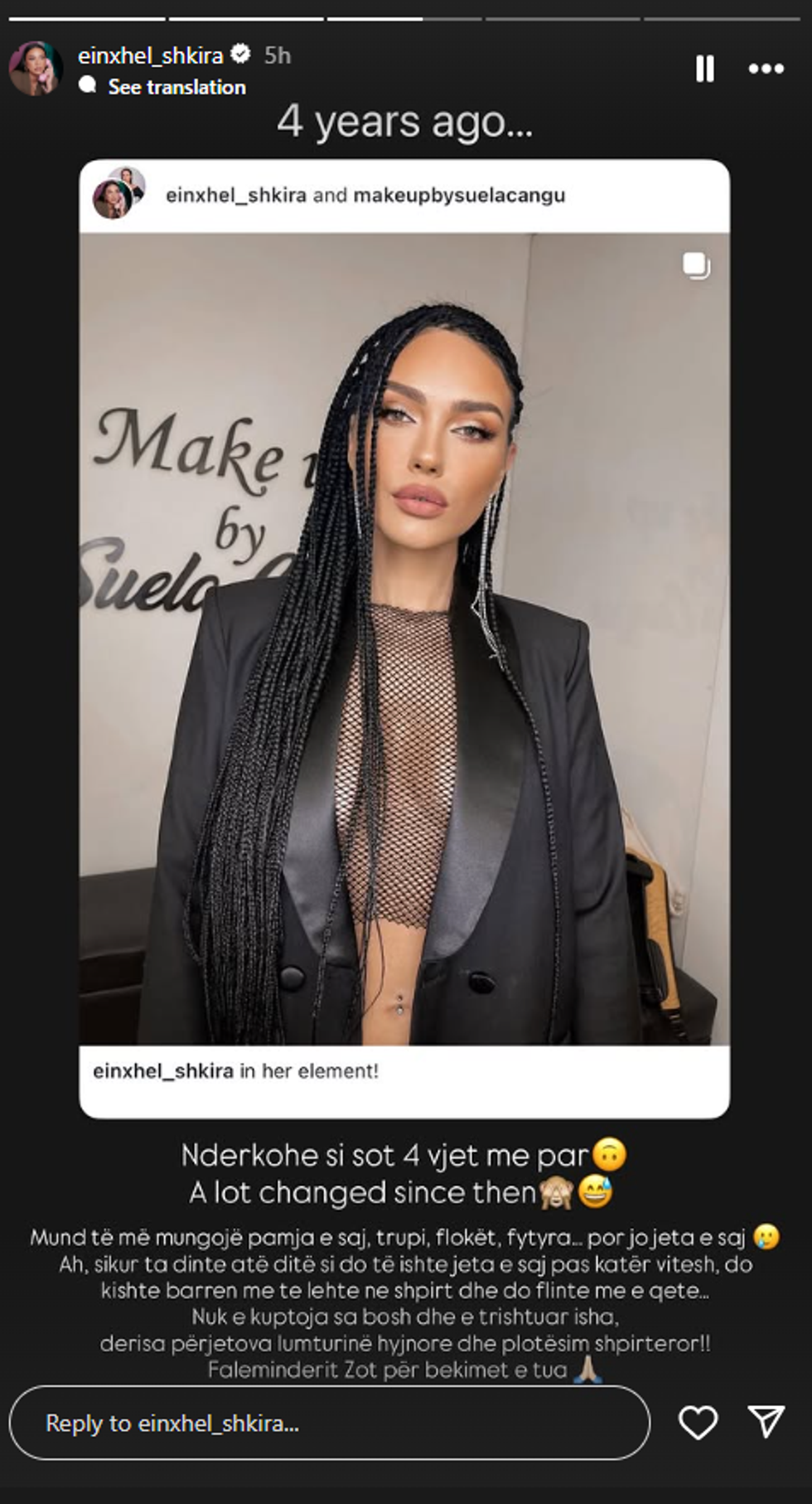 Në një postim në InstaStory, Einxhel është kthyer pas në kohë duke reflektuar mbi rrugëtimin e saj.