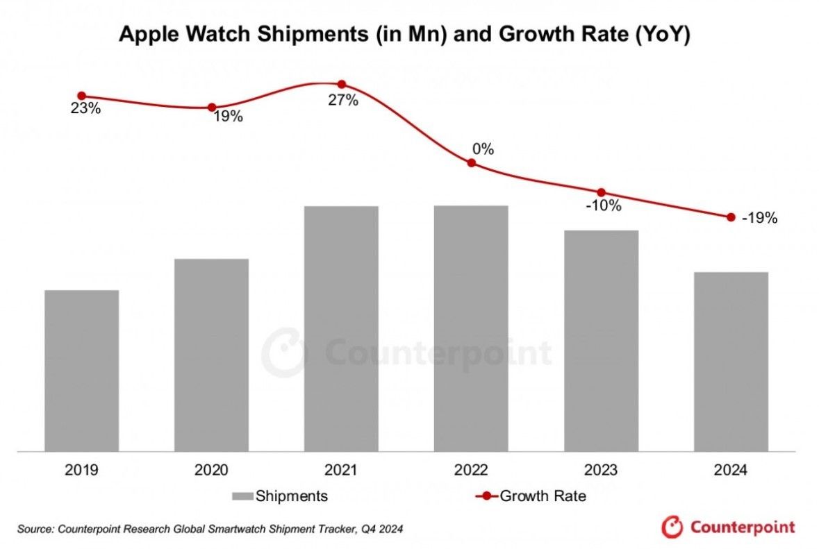 Sipas një raporti nga Counterpoint Research, dërgesat e Apple Watch ranë me 19% në vitin 2024, shkruajnë mediat e huaja, përcjell Telegrafi.
