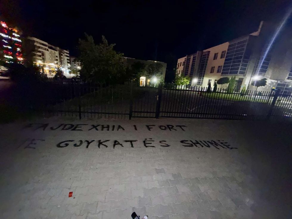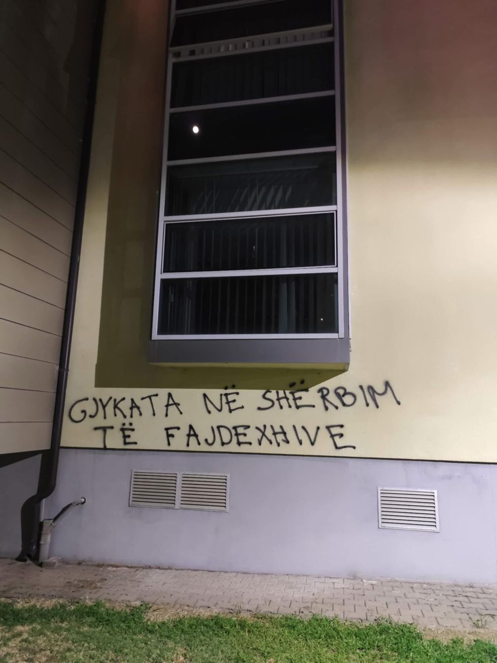 Para ndërtesës së Gjykatës së Gjilanit dhe në muret e saj u vendosën mbishkrime të ndryshme nga qytetarët.