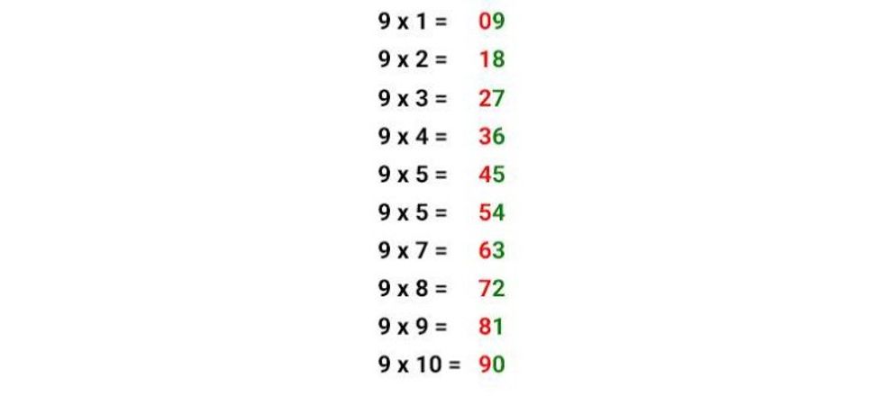Mësojeni shumëzimin e numrit 9 duke pasur parasysh që renditja e shumave është nga 0 deri tek numri 9.