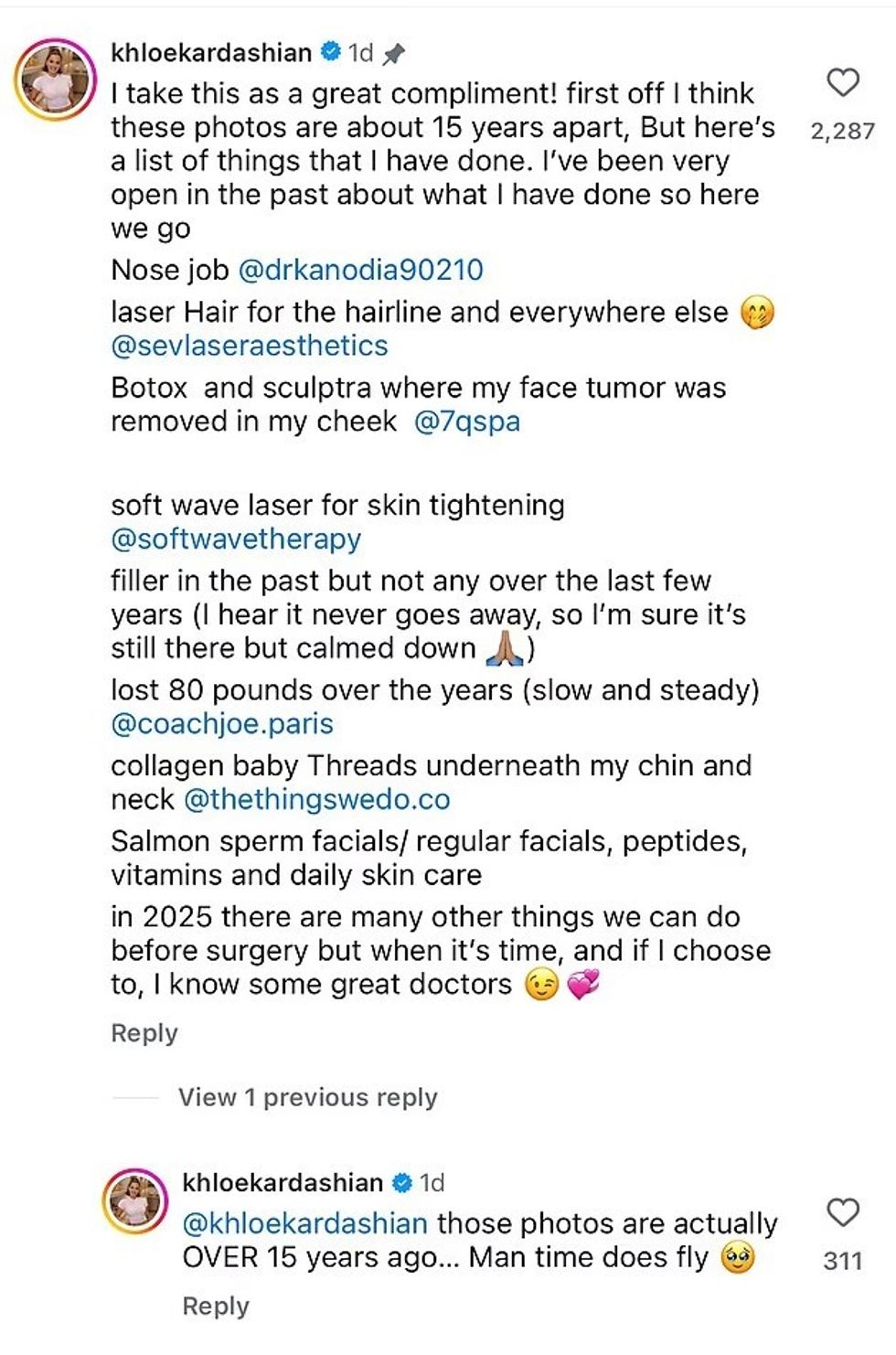 Përballë gjithë kësaj vëmendjeje, Khloe reagoi drejtpërdrejt në komente duke konfirmuar disa procedura dhe duke mohuar të tjera.