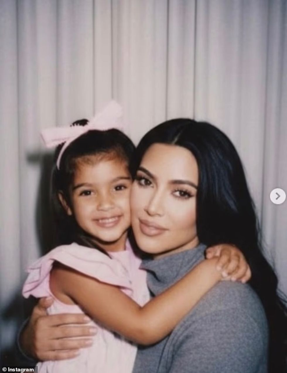 Në një foto tjetër, ajo publikoi edhe një imazh ku vajza e saj 12-vjeçare, North West, shfaqet pranë saj si adoleshente, e krijuar gjithashtu përmes inteligjencës artificiale.