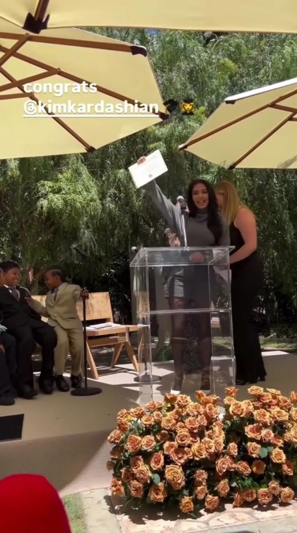 Në ceremoninë e diplomimit, e cila u mbajt në Beverly Hills, Kim mbajti një fjalim për miqtë dhe familjen. Megjithëse ajo nuk ka ndjekur një shkollë zyrtare, momenti për të ishte simbolik dhe emocional.