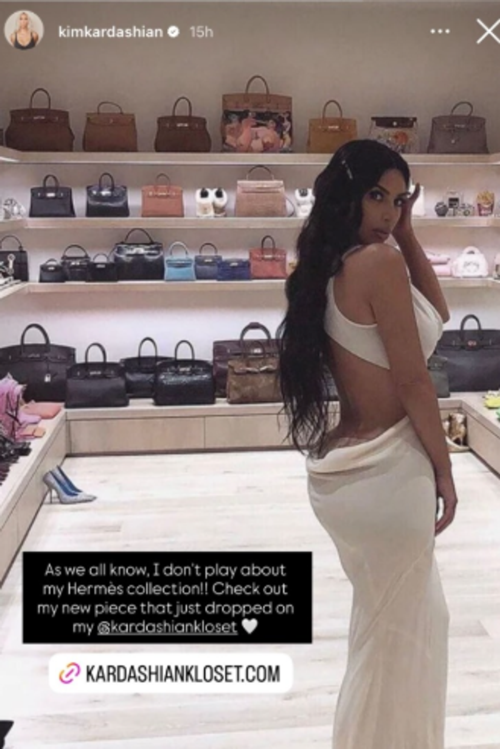 Aty shihet një pjesë e koleksionit të saj të çantave Hermes, dhe në përshkrim ajo shkroi: "Siç e dimë të gjithë, nuk bëj shaka me koleksionin tim të Hermesit”.