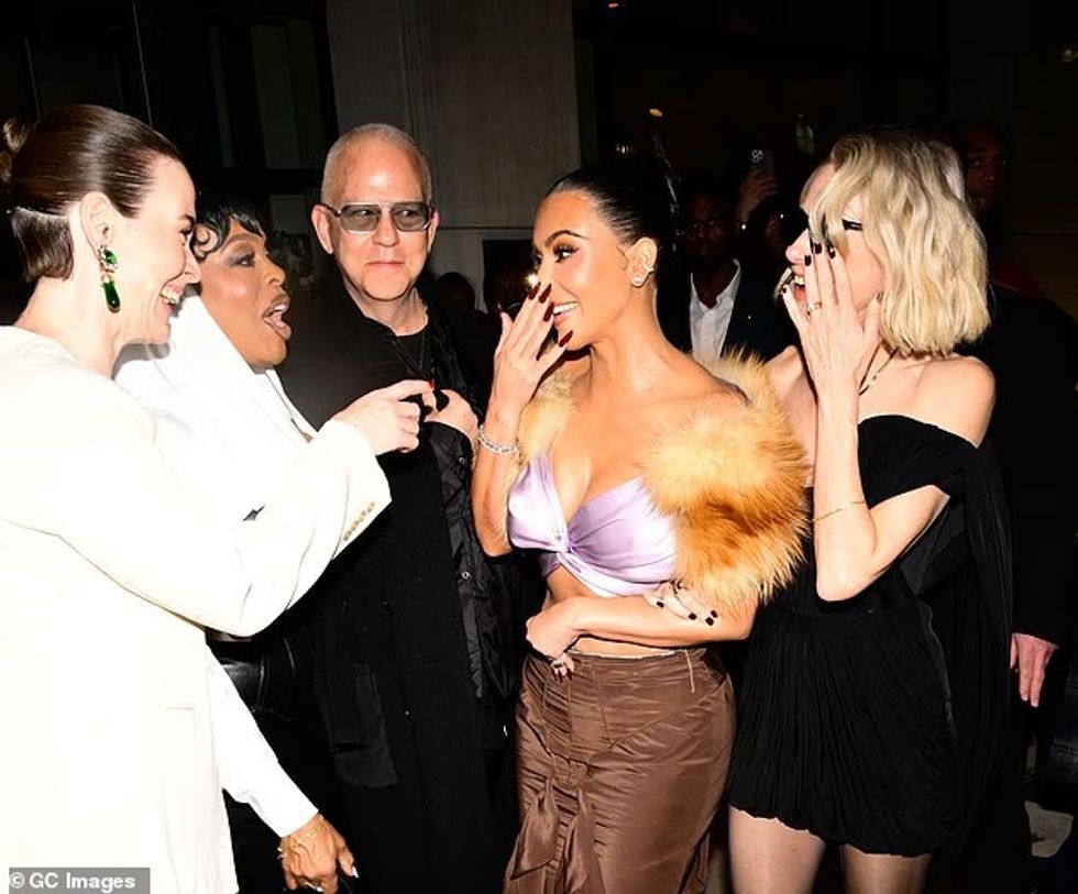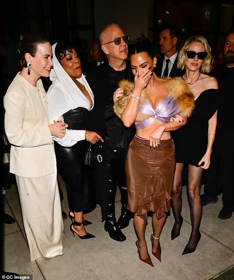 Kim Kardashian shfaq linjat e tonifikuara në një fustan të zi, ndërsa feston me shoqet e reja Naomi Watts dhe Sarah Paulson